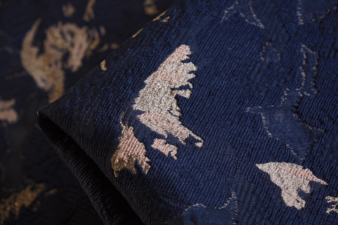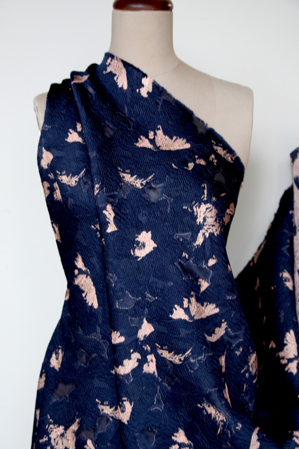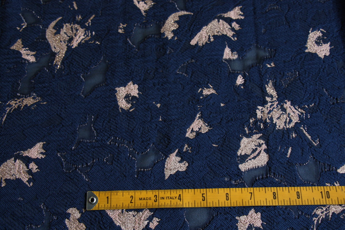Designer navy/blush 82% polyester 18% metal blend jacquard .