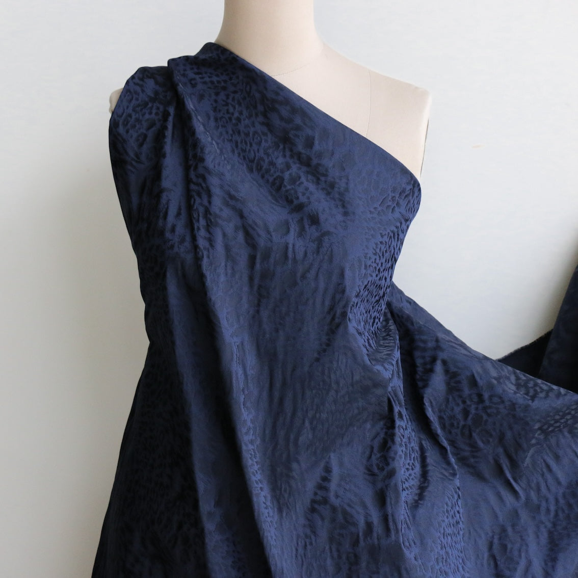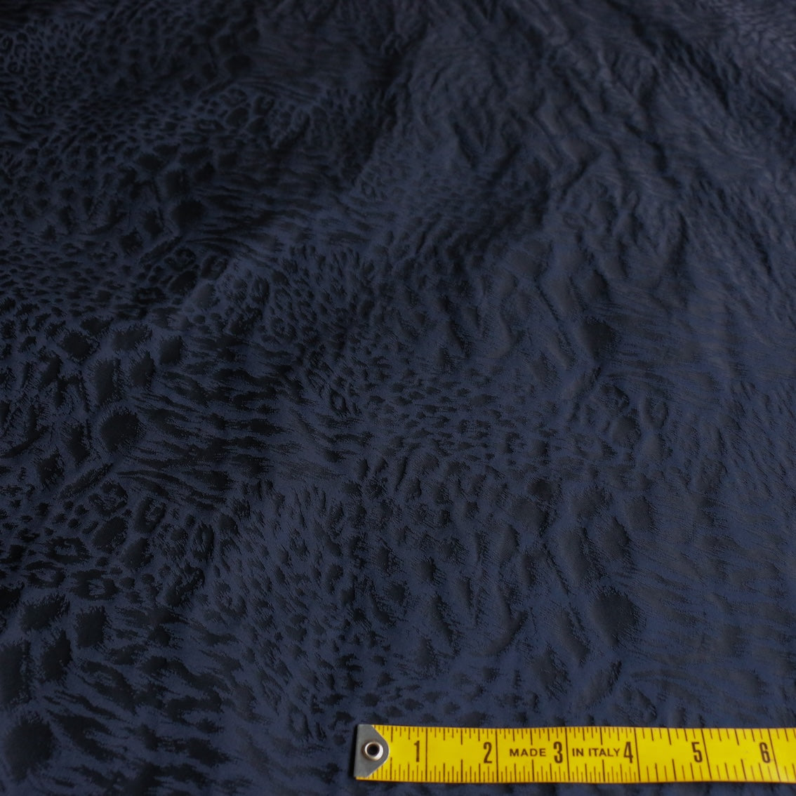 Italian designer navy 100% polyester leopard spot jacquard taffeta