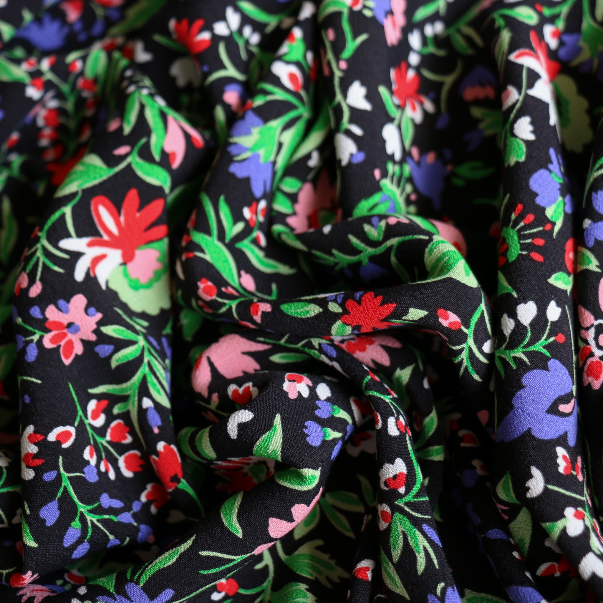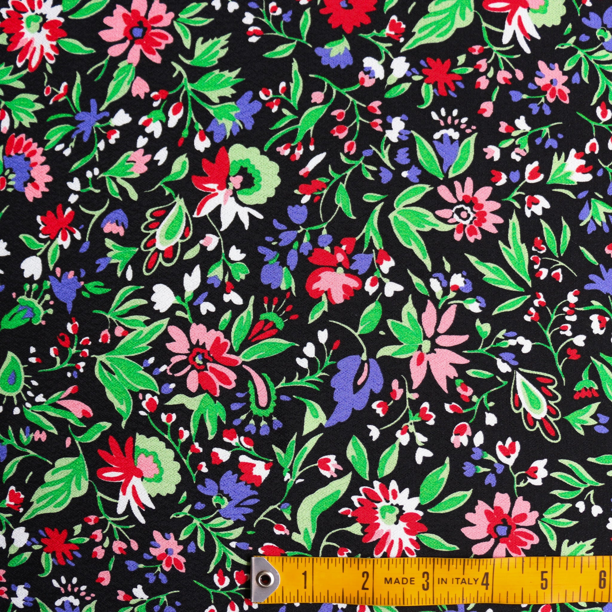 Italian designer black/red/green/pink/lavender floral printed 100% viscose crepe