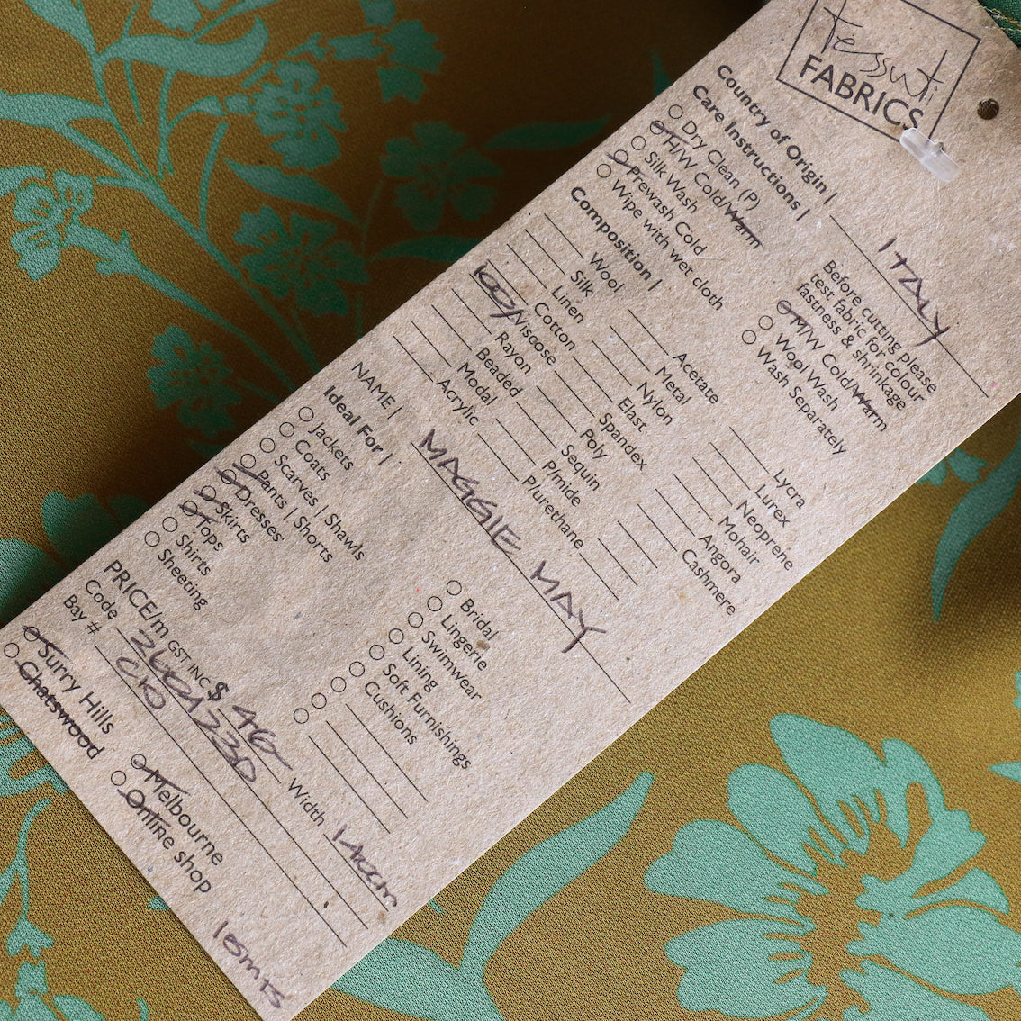 Italian olive/green floral printed 100% viscose