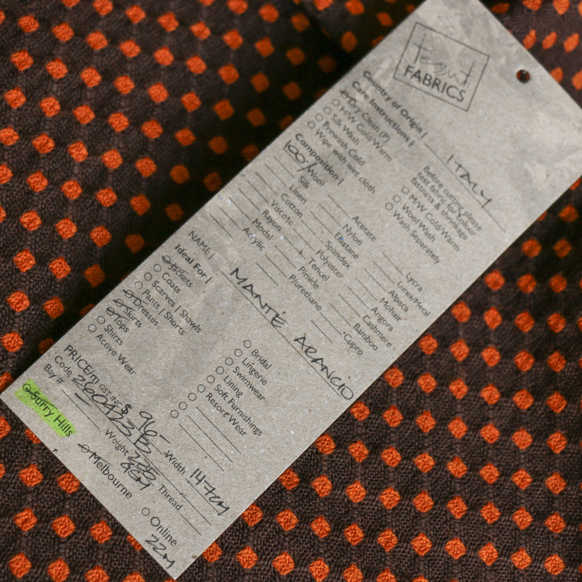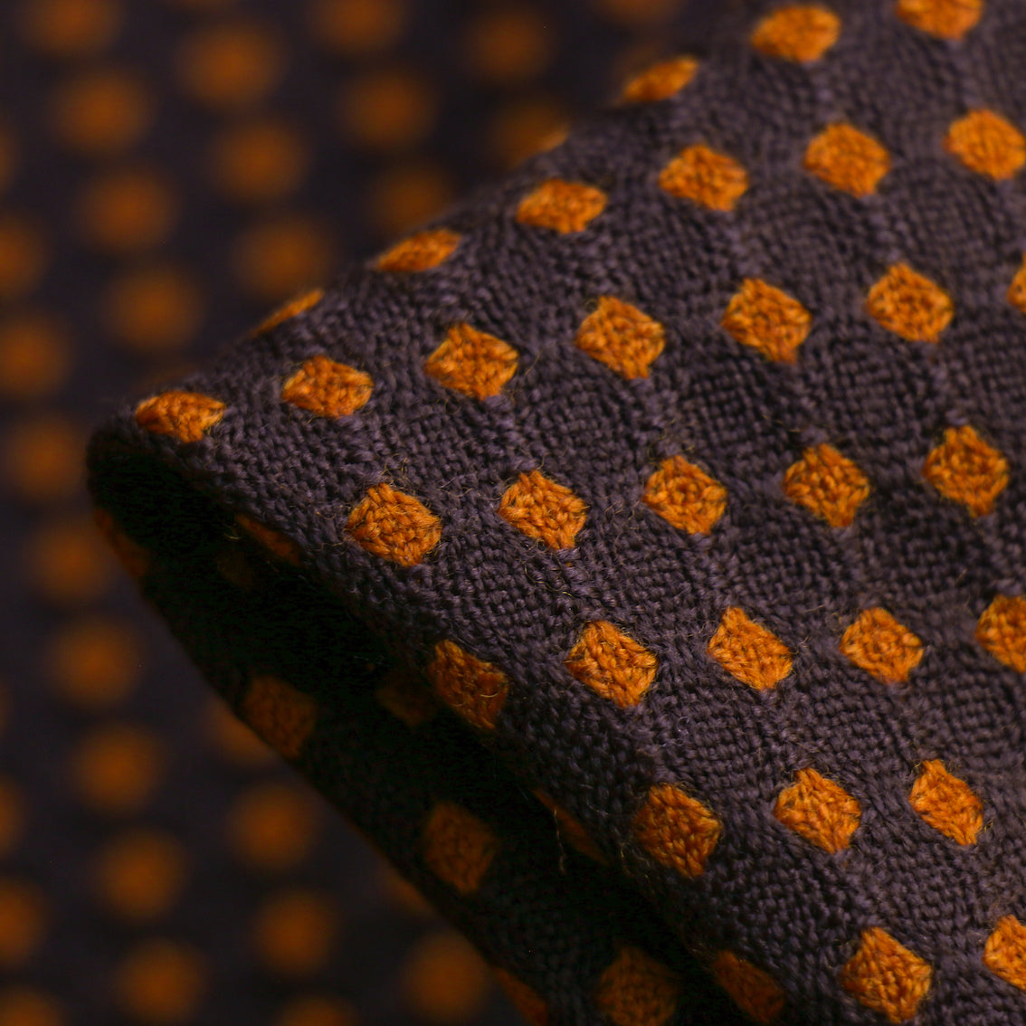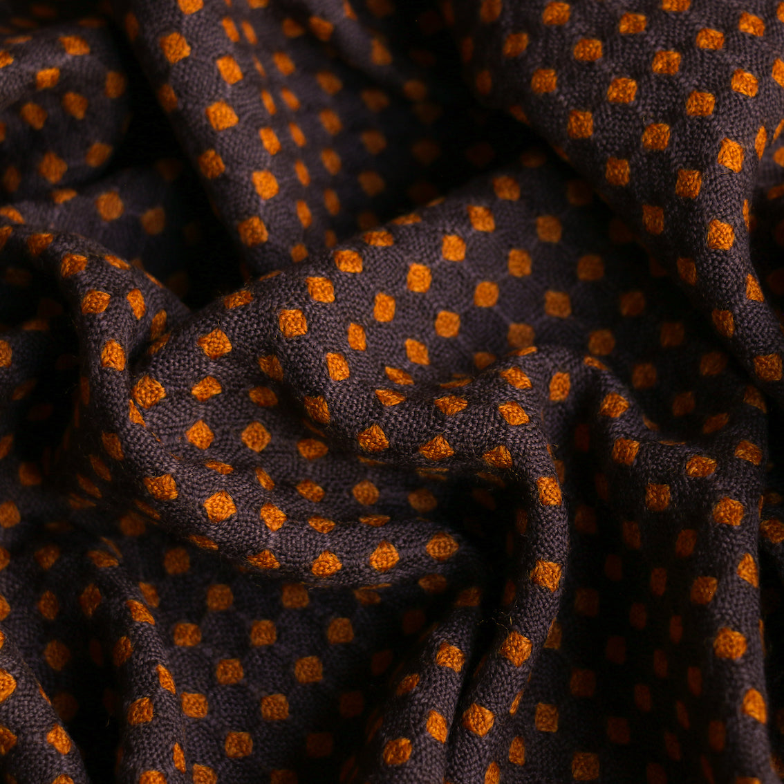 Italian chocolate/burnt orange spot 100% wool jacquard