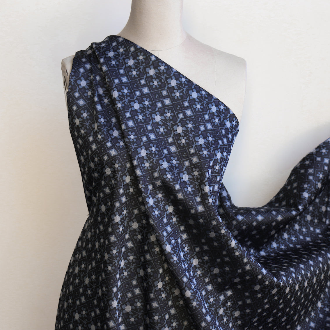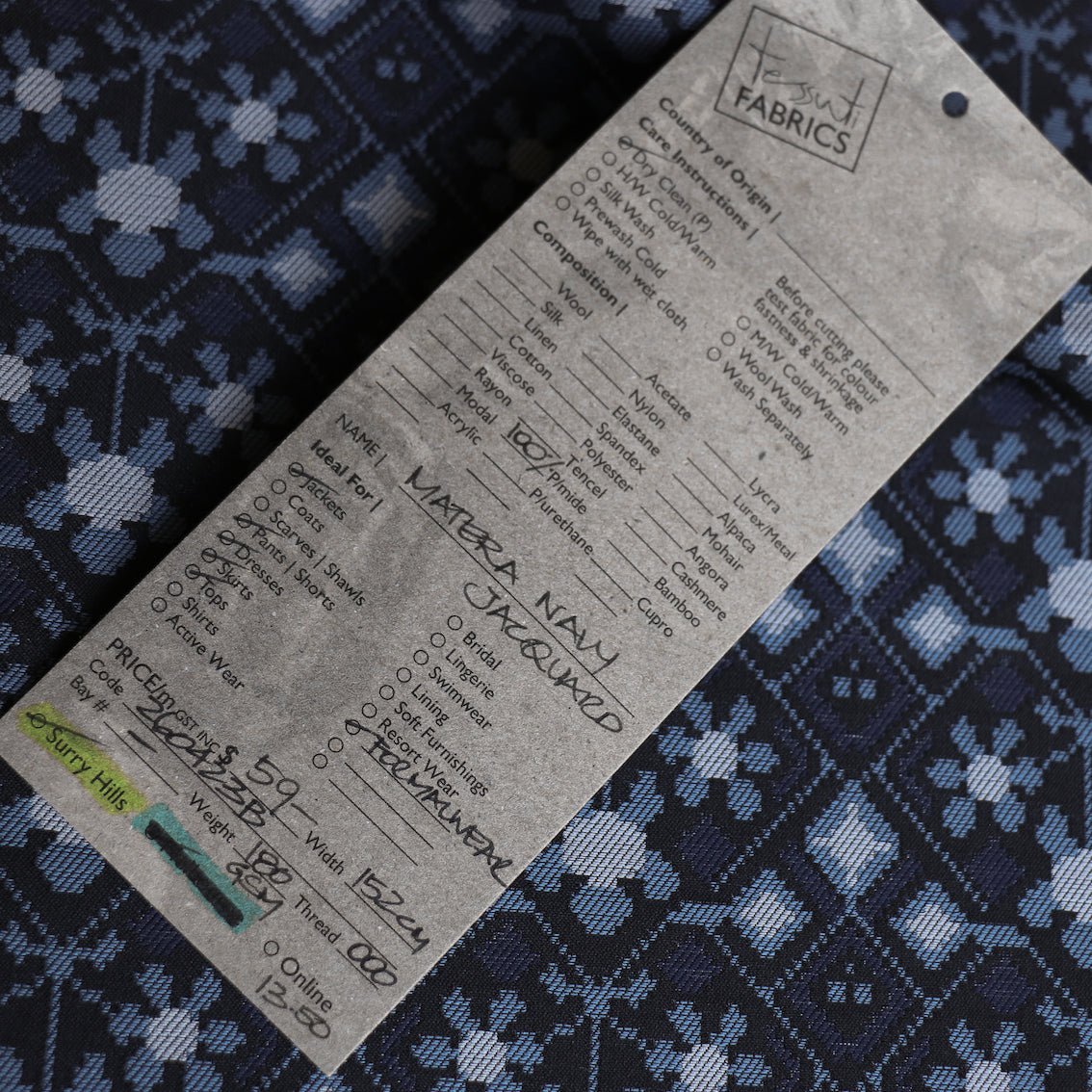 Italian designer navy/blue/black 100% polyamide floral jacquard