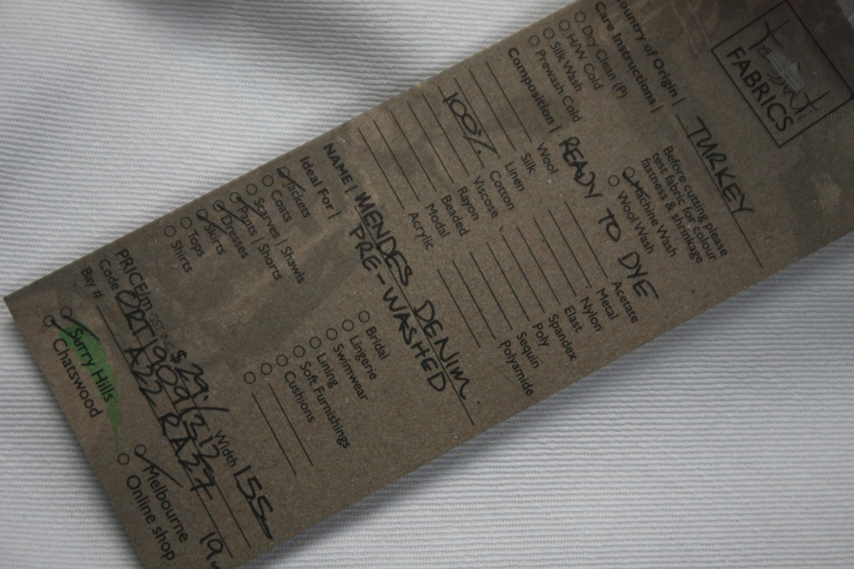 Prepared For Dyeing 100% Cotton Denim. Imported from Turkey. Width:155cm. Ideal for jackets, skirts, pants, jeans, sleeveless jackets, shorts etc