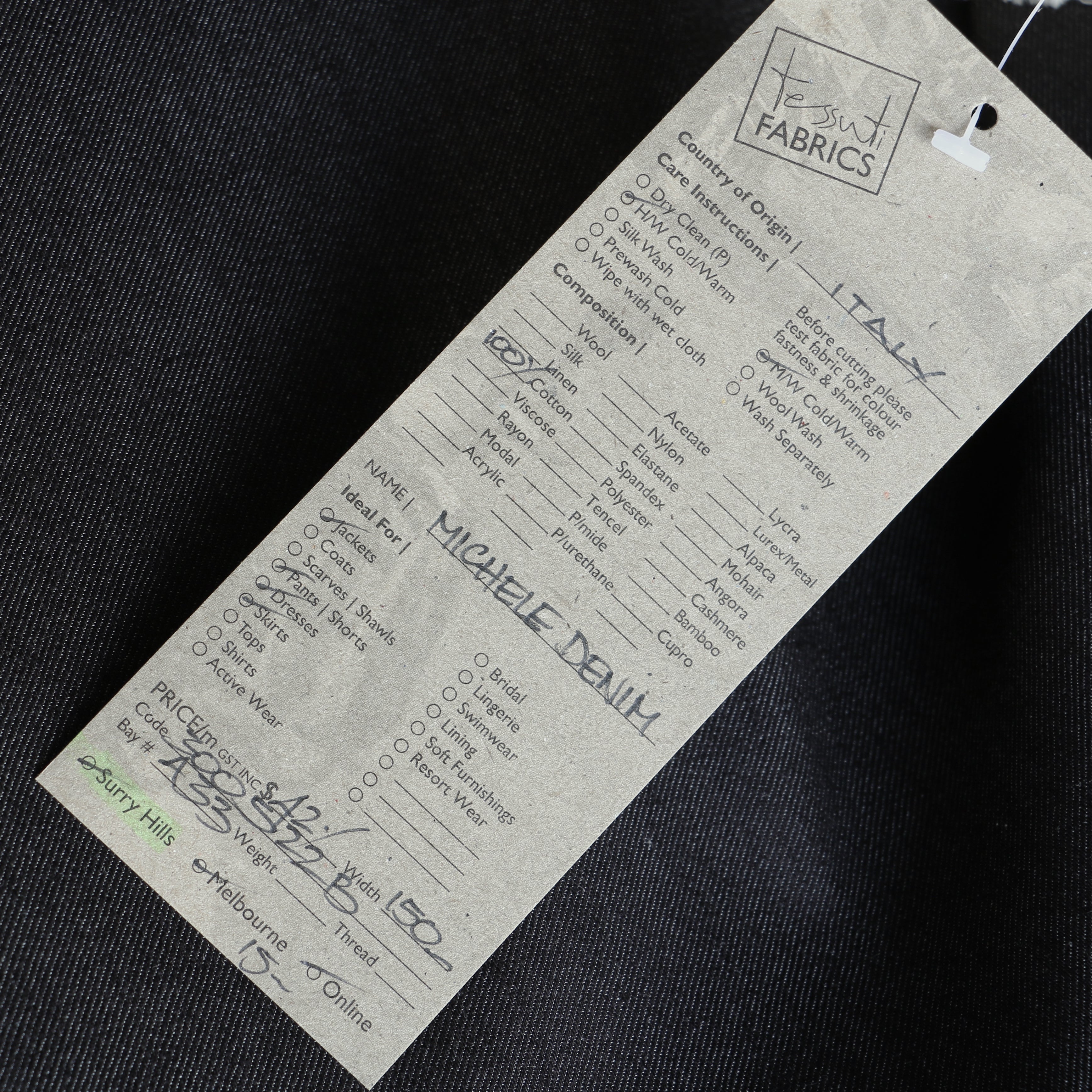 Designer Italian dark navy 100% cotton lightweight denim