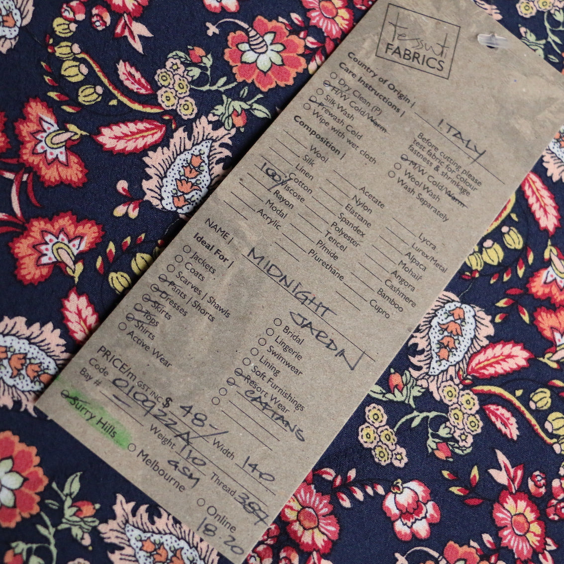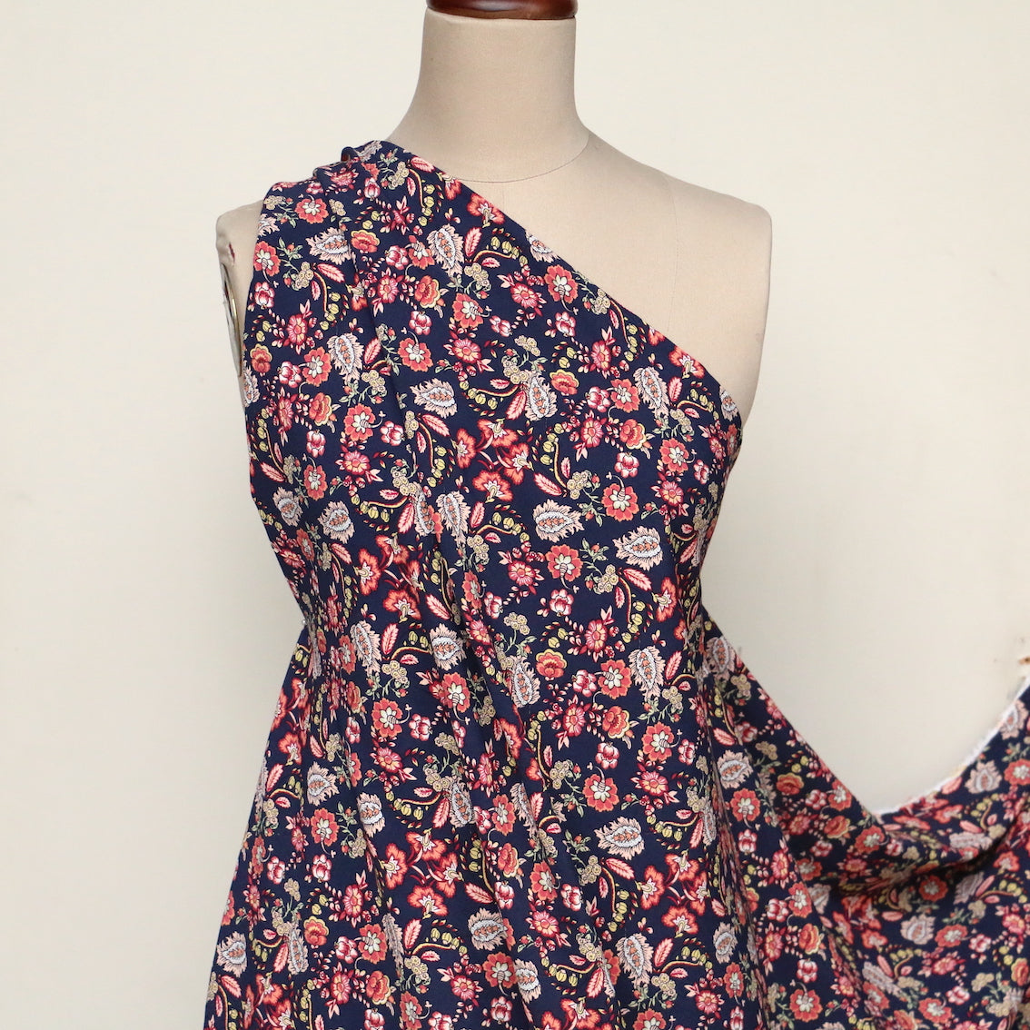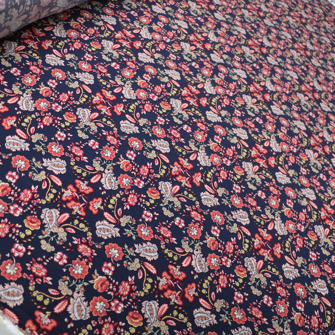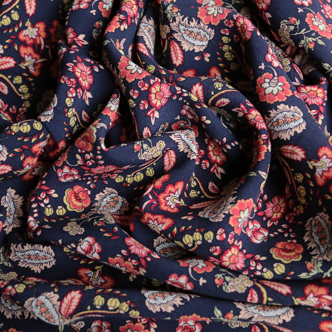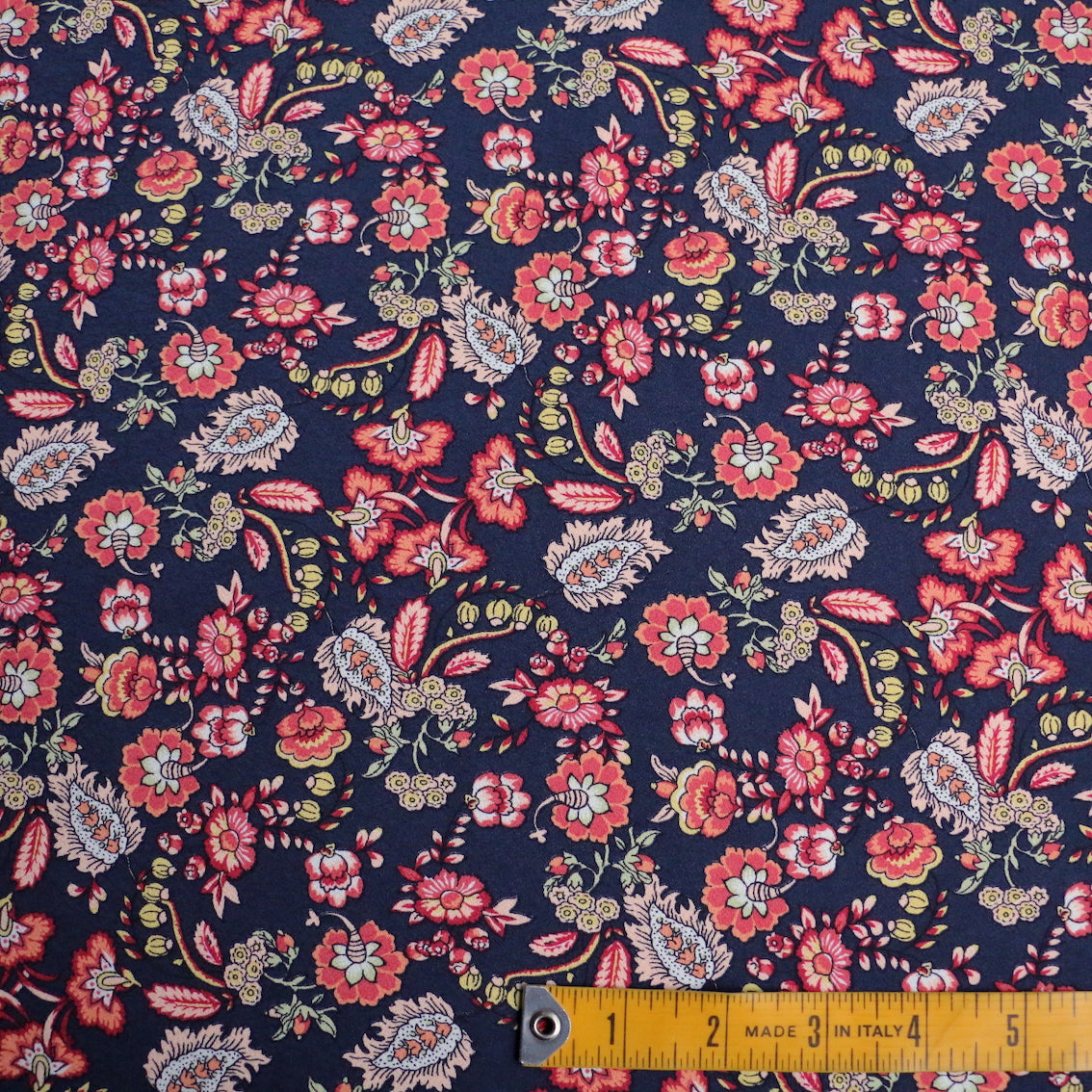 Italian designer navy/henna jardin floral printed 100% viscose crepe