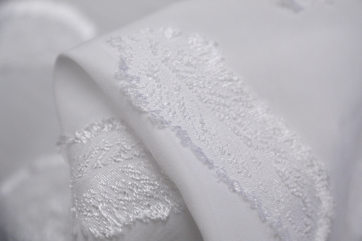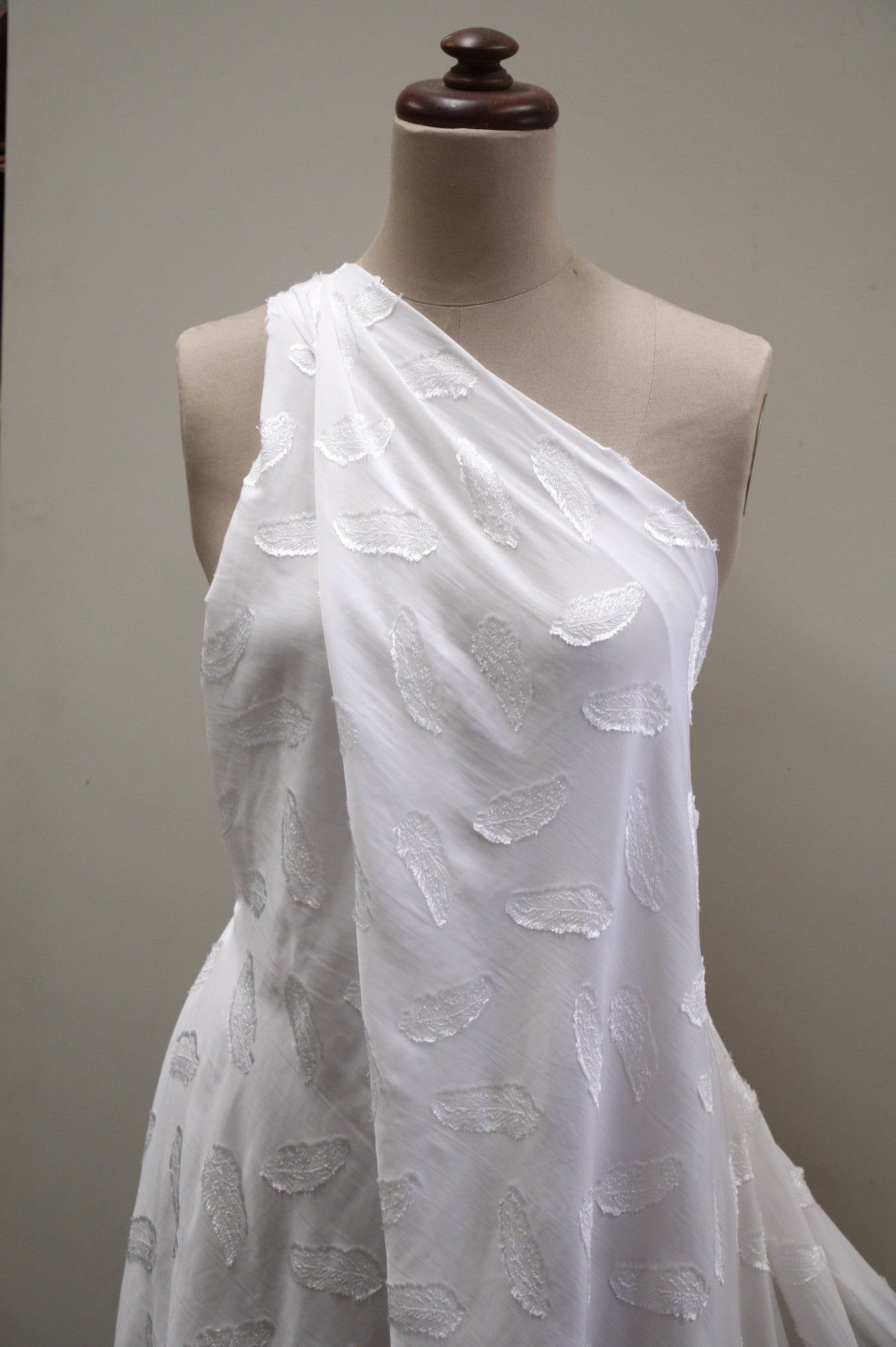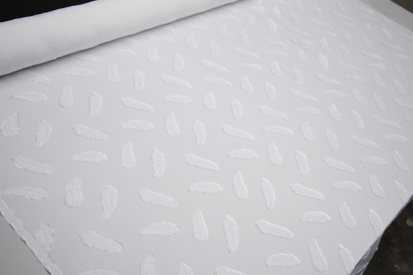 White embossed Japanese technical 100% Polyester. 130cm wide.