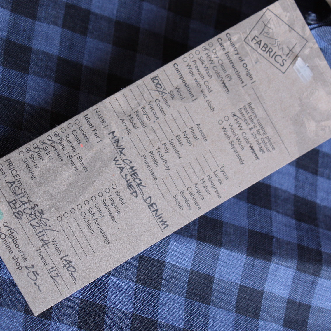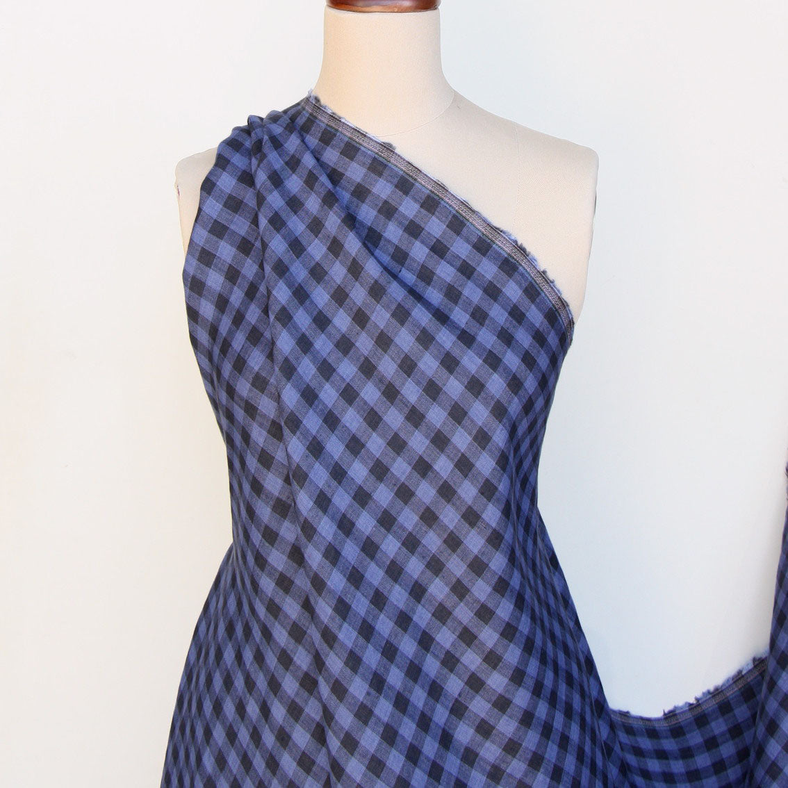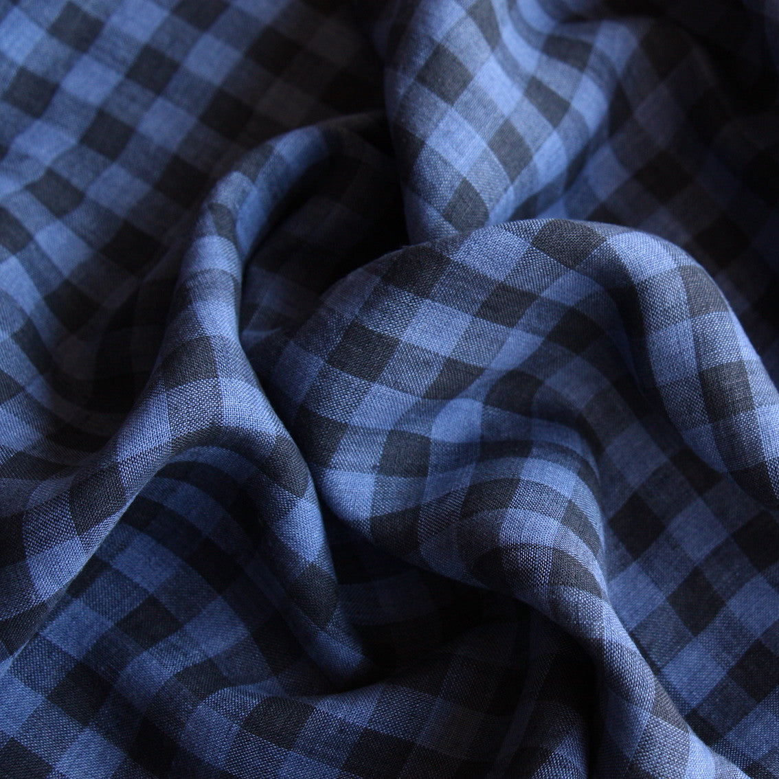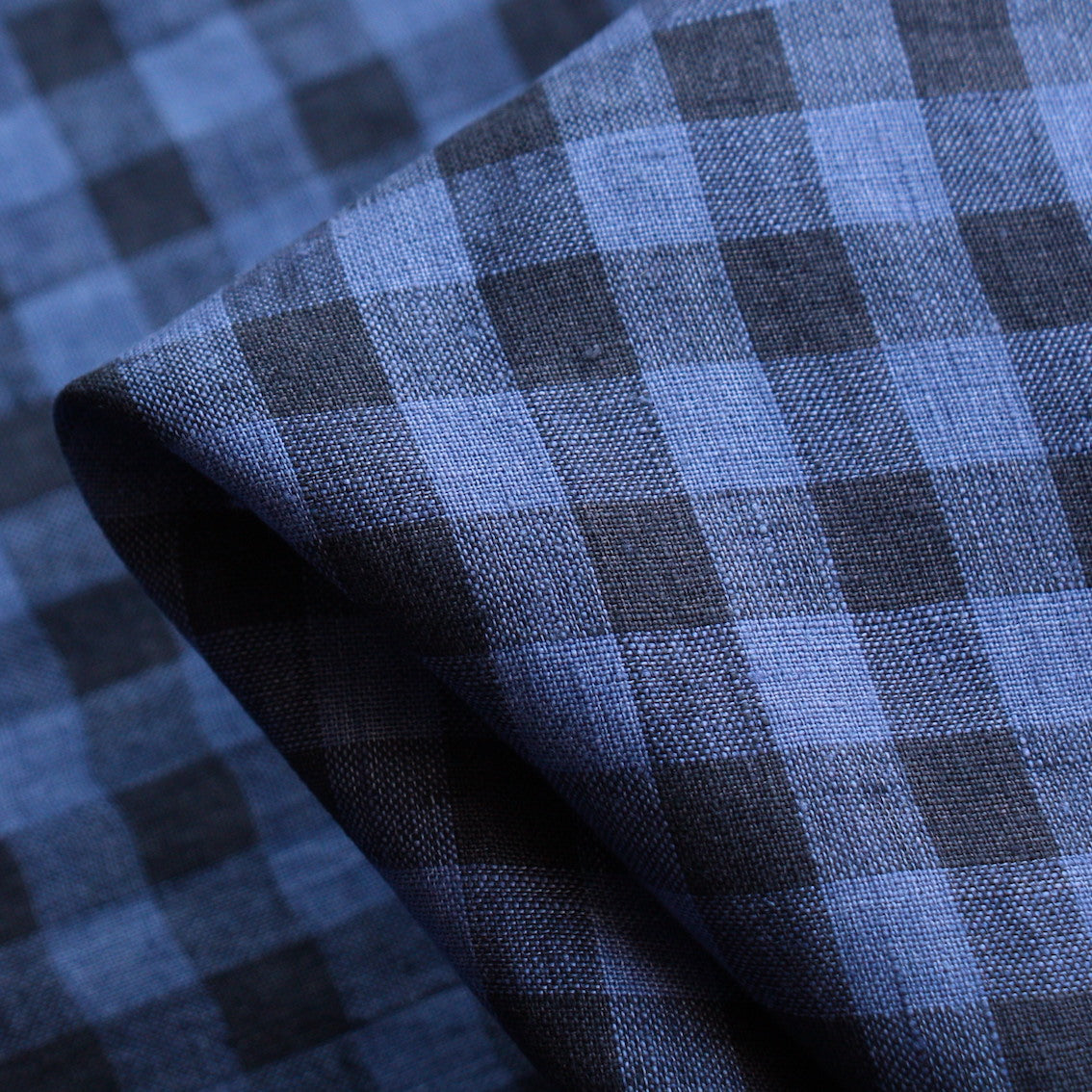 Washed denim/navy yarn-dyed checked 100% linen. Width: 140cm