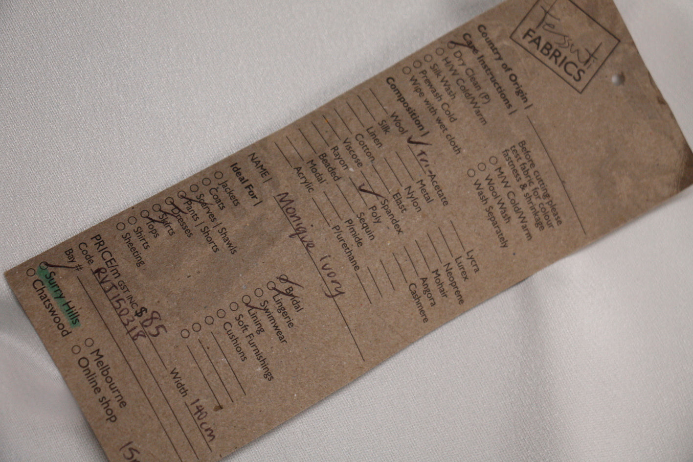 Ivory satin backed 82% acetate 18% polyester. Width: 135cm