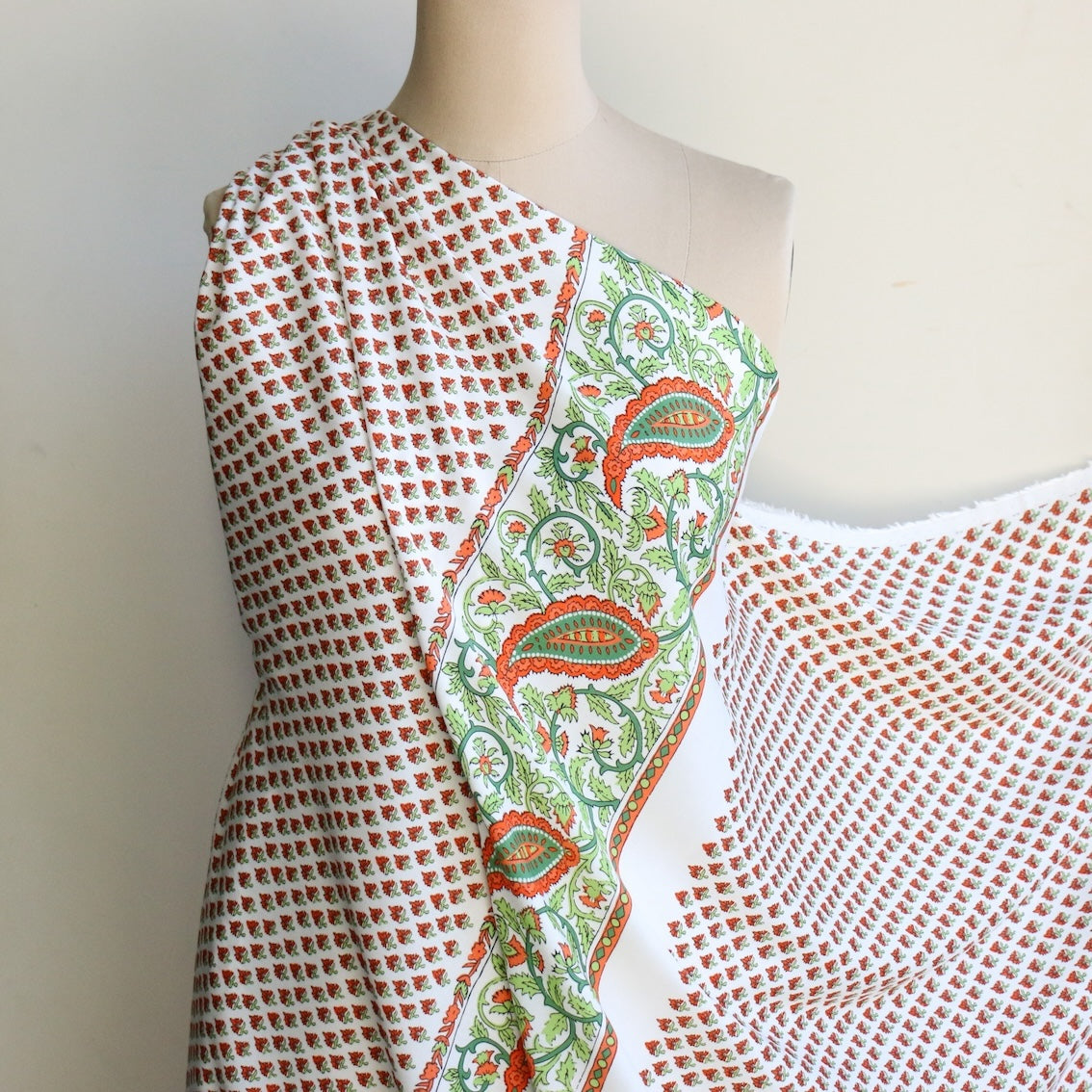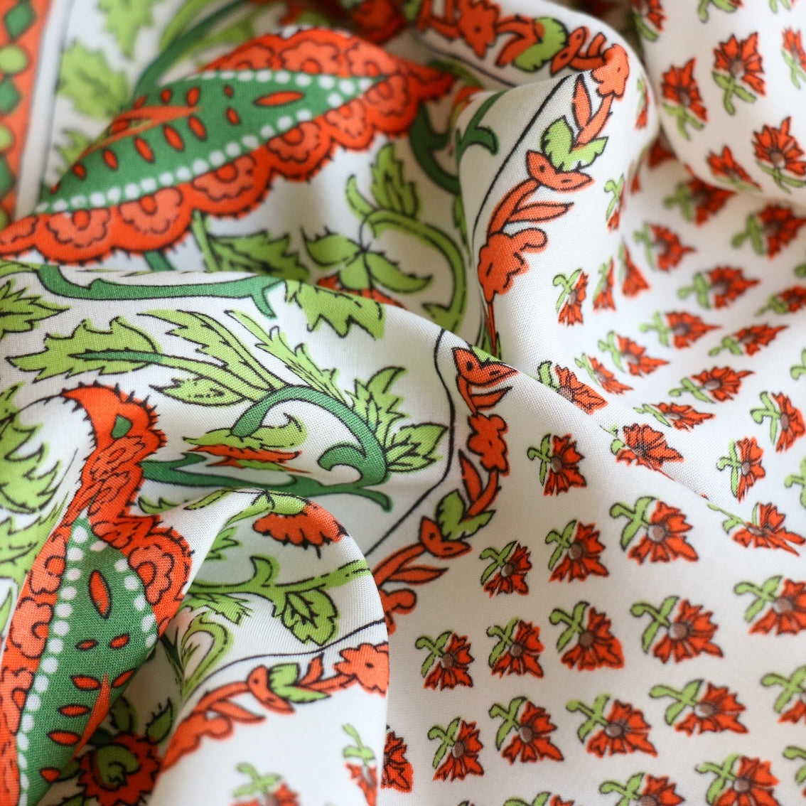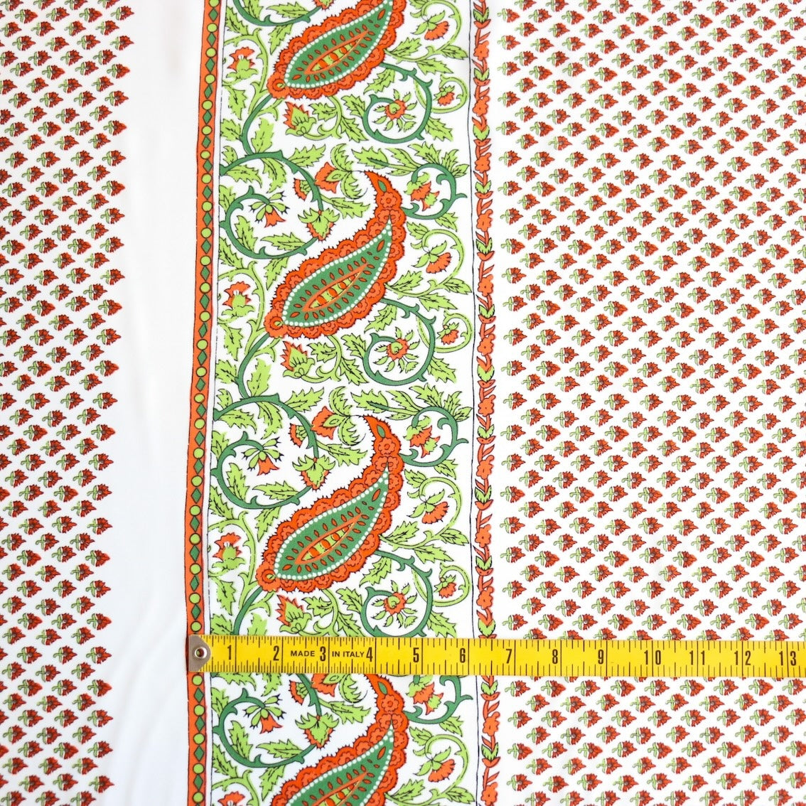 Italian orange/green/white panel printed 100% viscose
