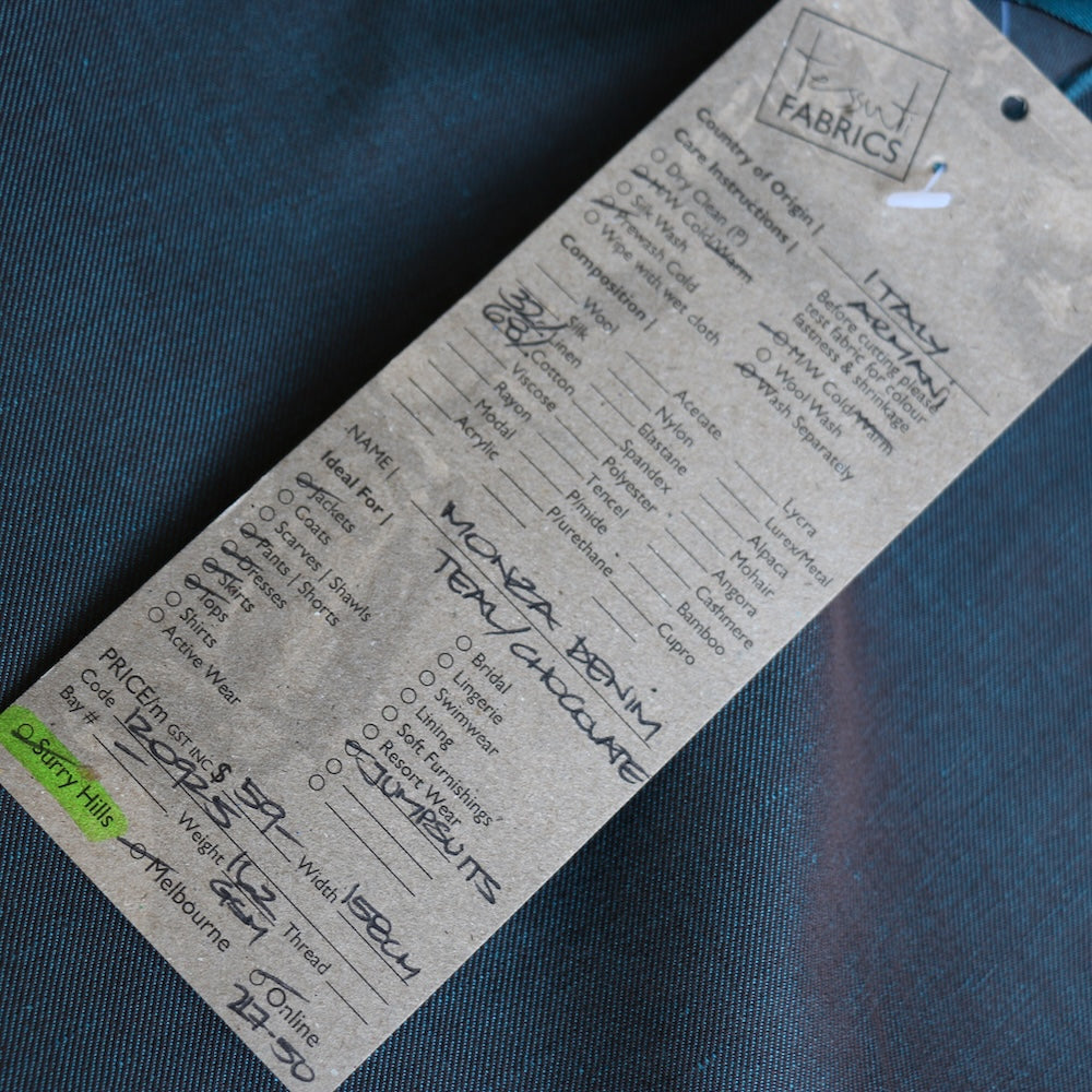 Monza Denim Teal/Chocolate - Cotton/Linen Denim