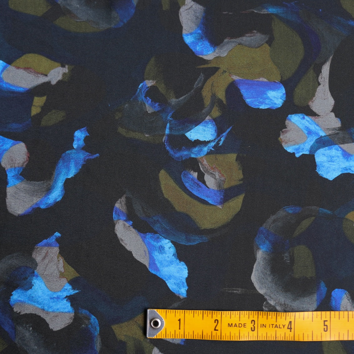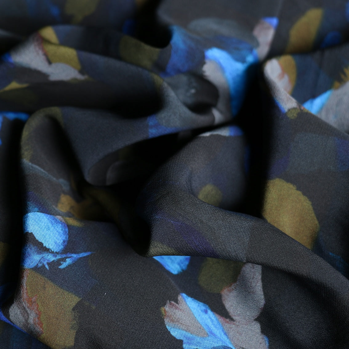 Black/cobalt/grey printed 100% viscose crepe de chine