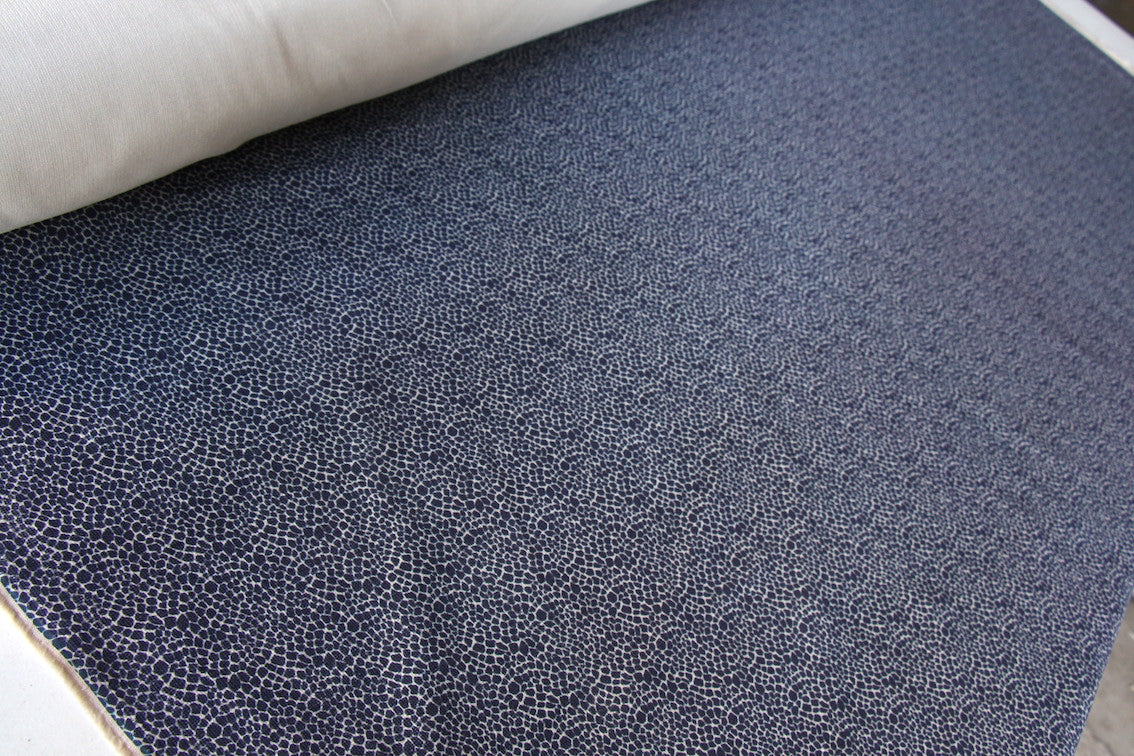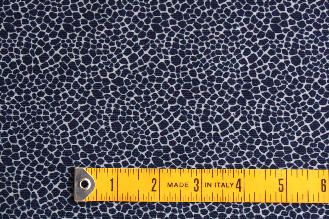 Italian 97% cotton 3% elastane indigo blue/string printed stretch pinwale corduroy. Width:150cm