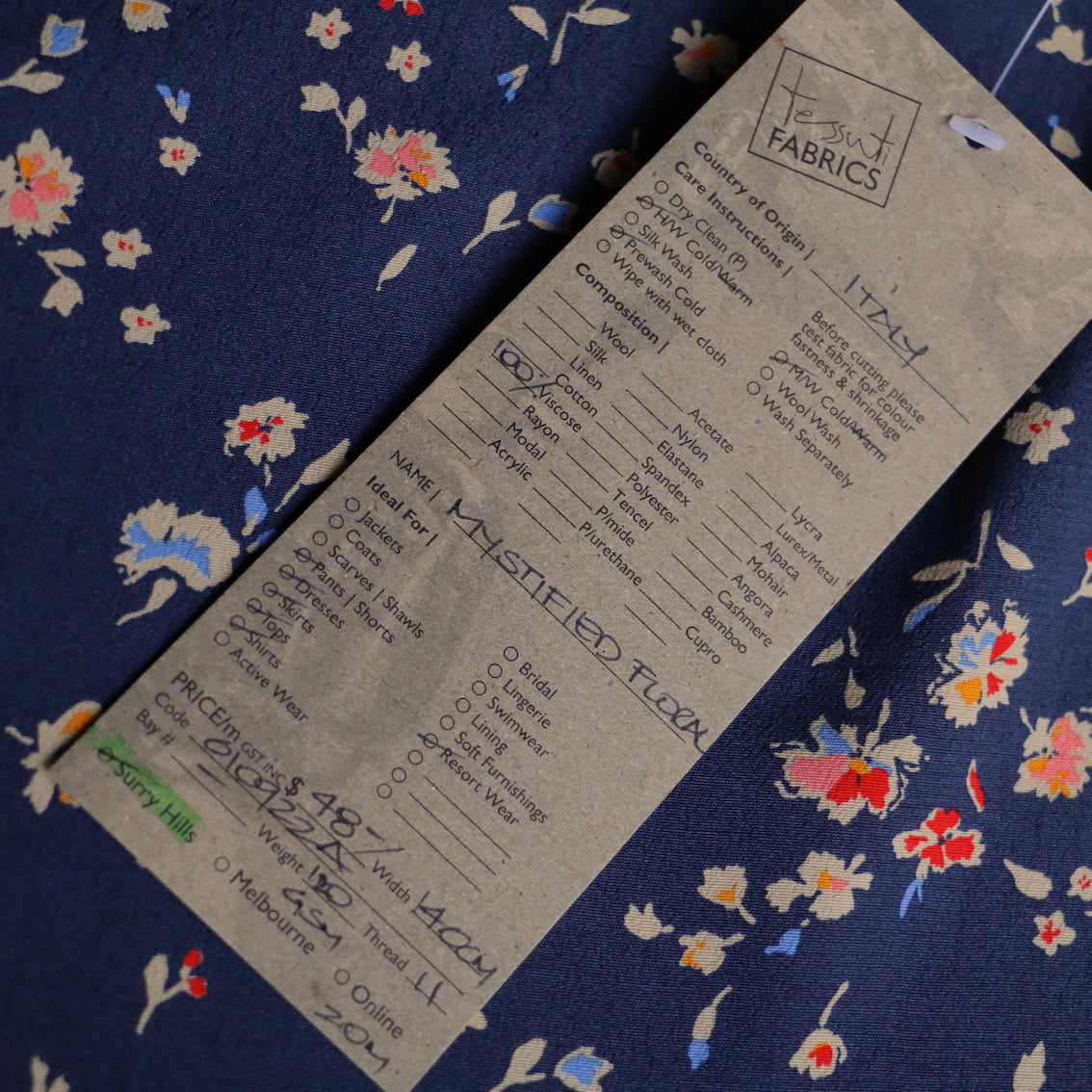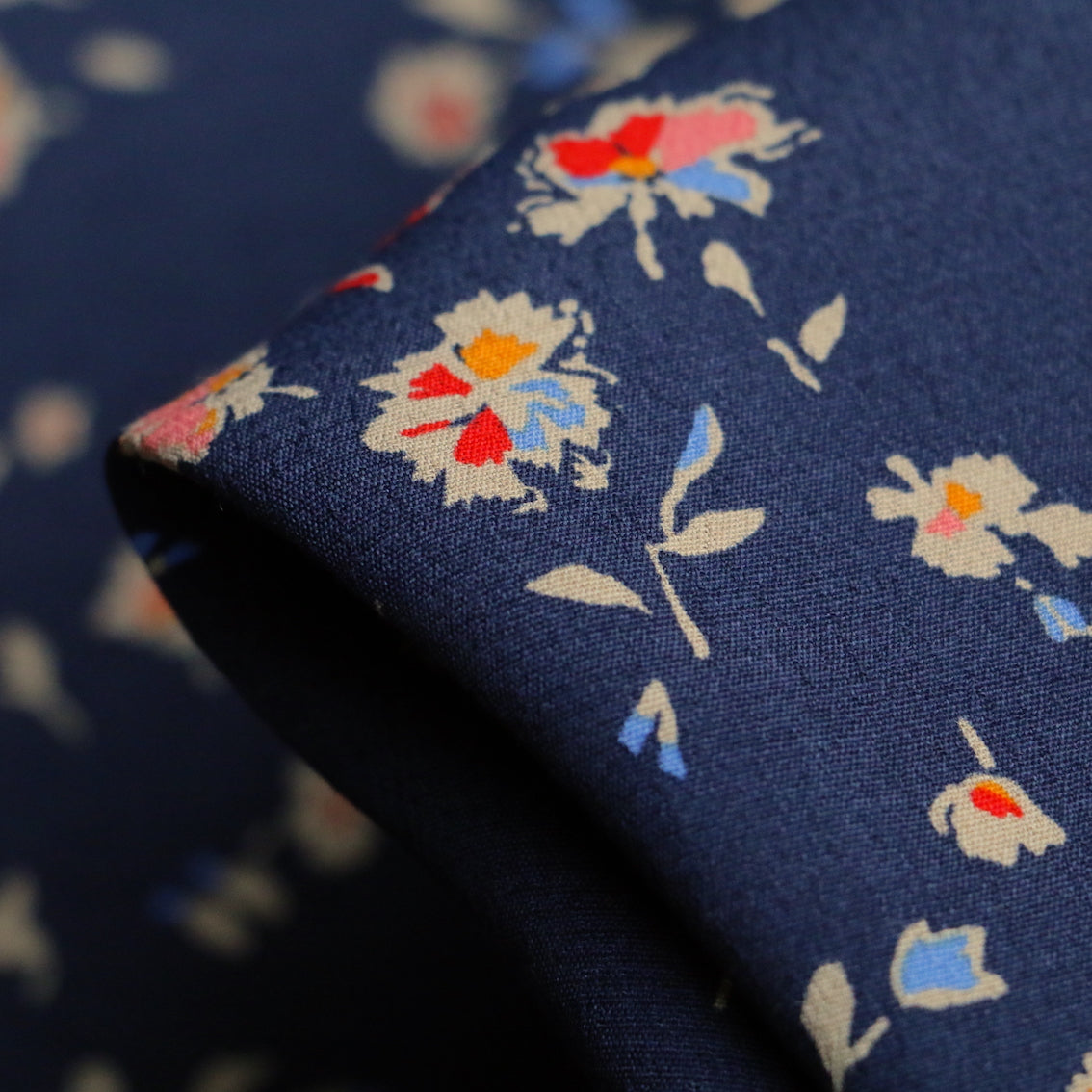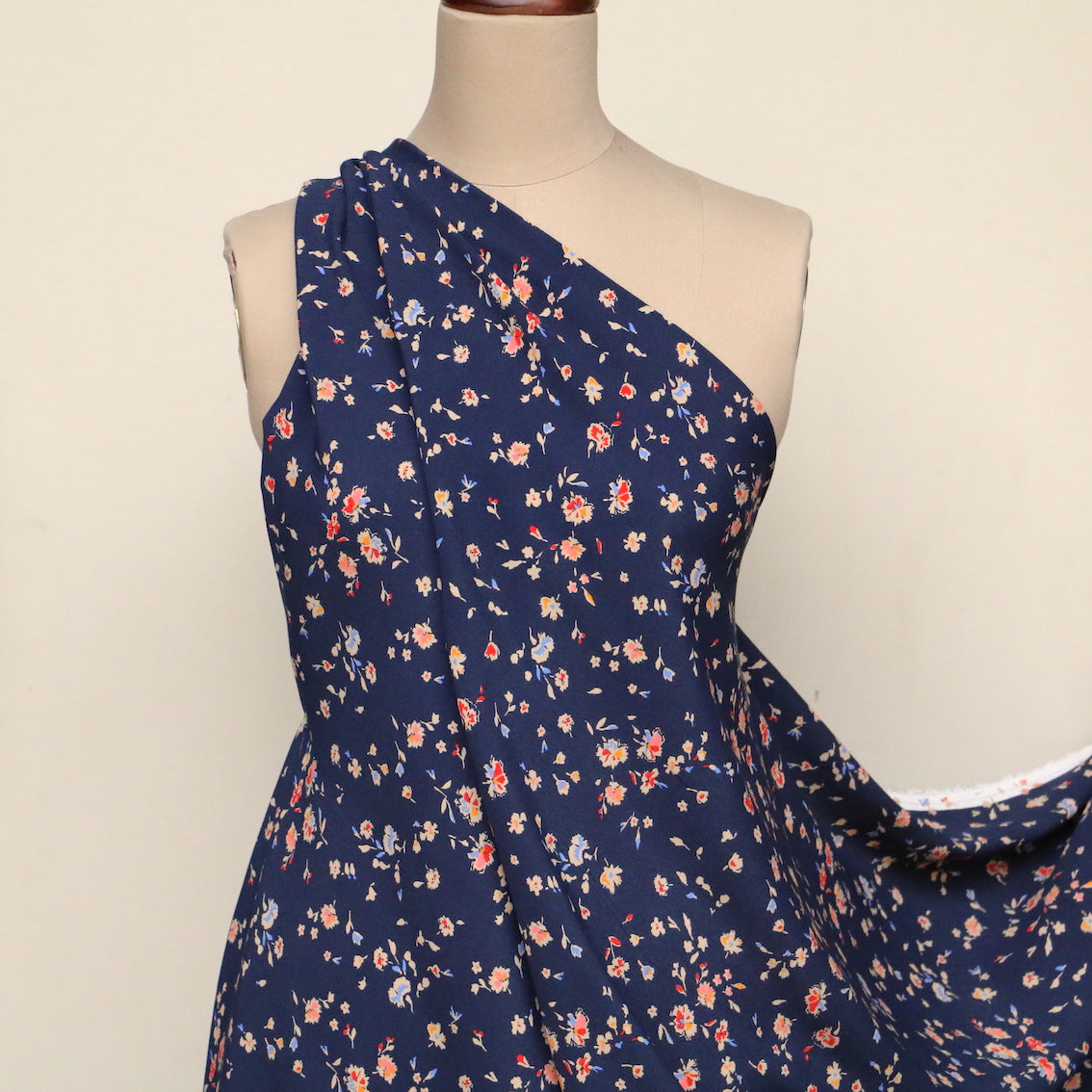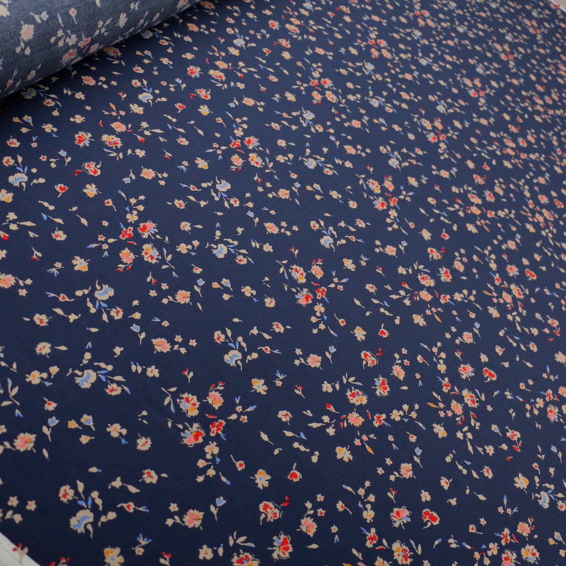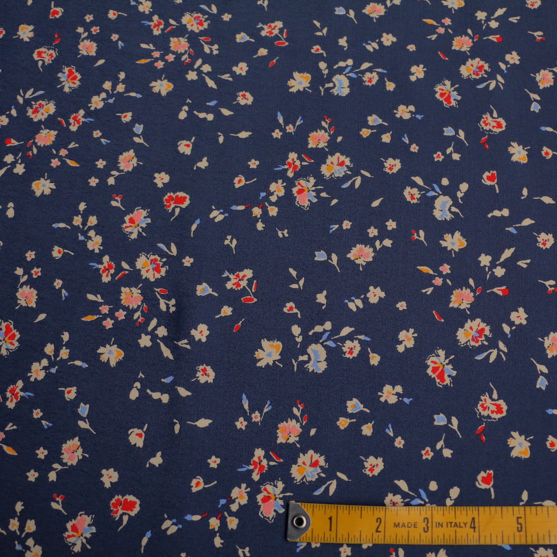 Italian designer navy/cafe/red/orange mini ditsy floral printed 100% viscose crepe