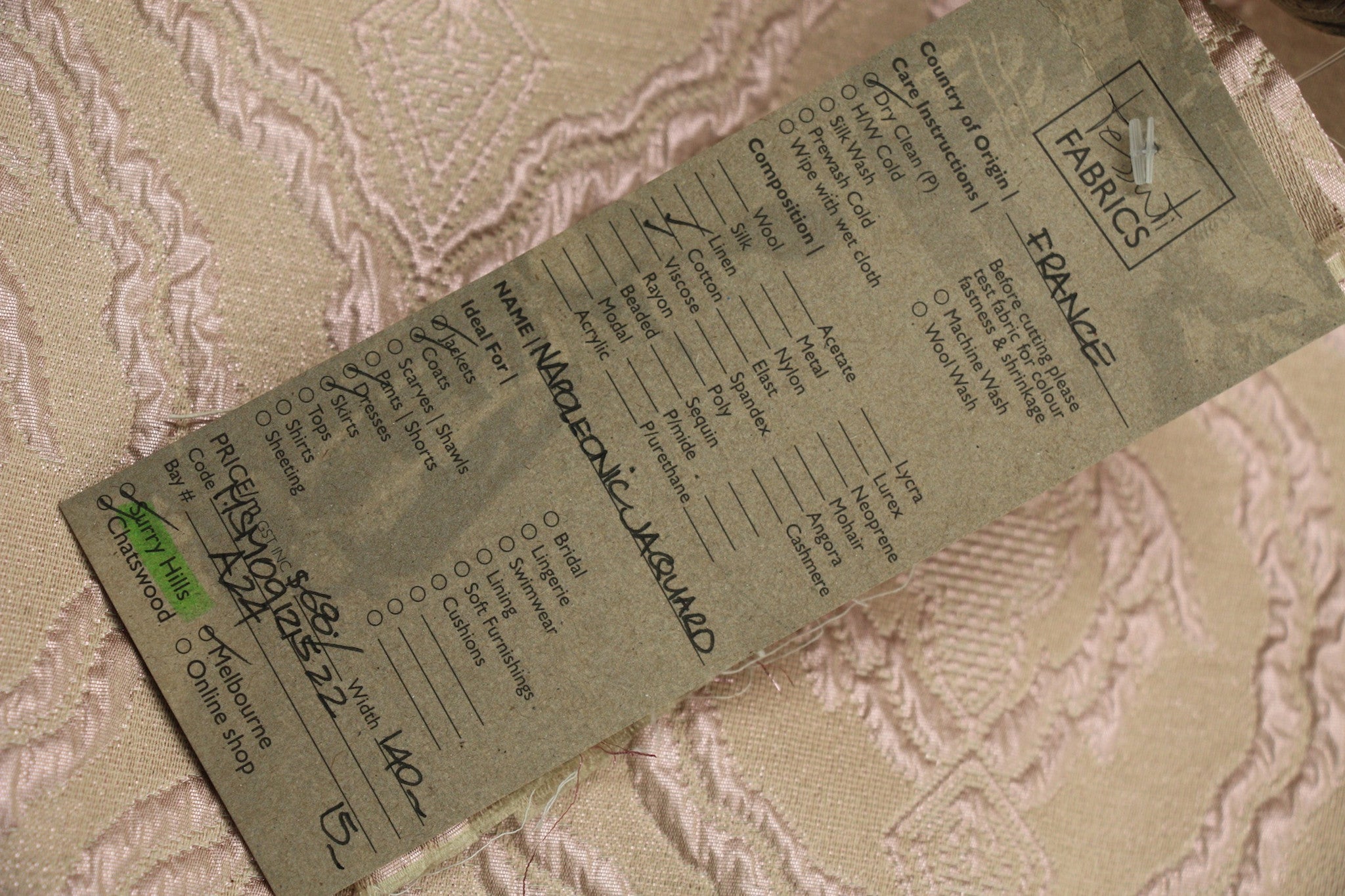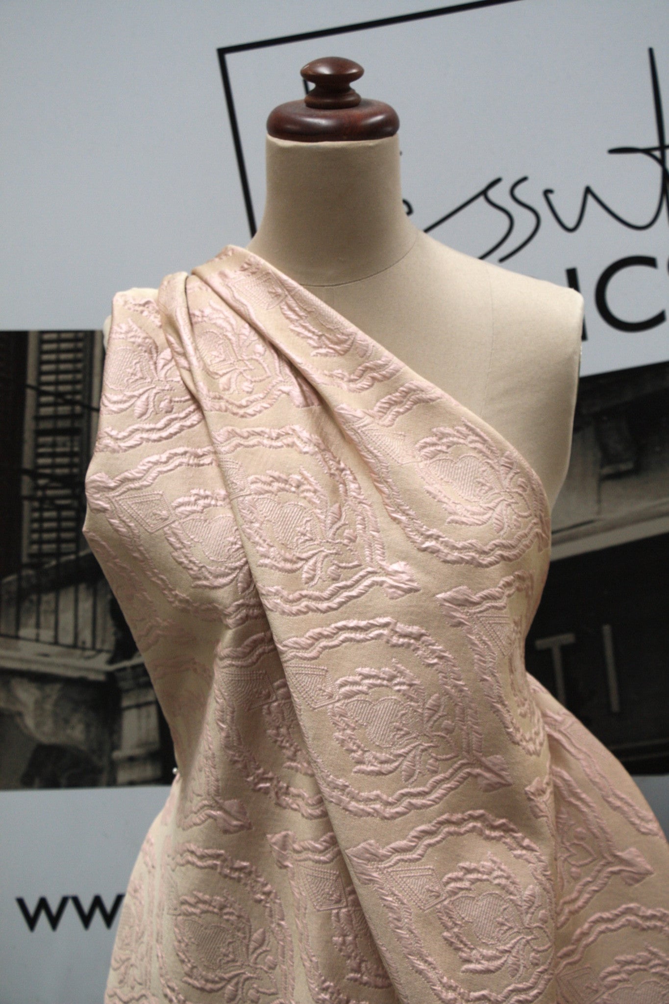 Designer French Blush/Gold Viscose/Cotton Jacquard. Width:140cm