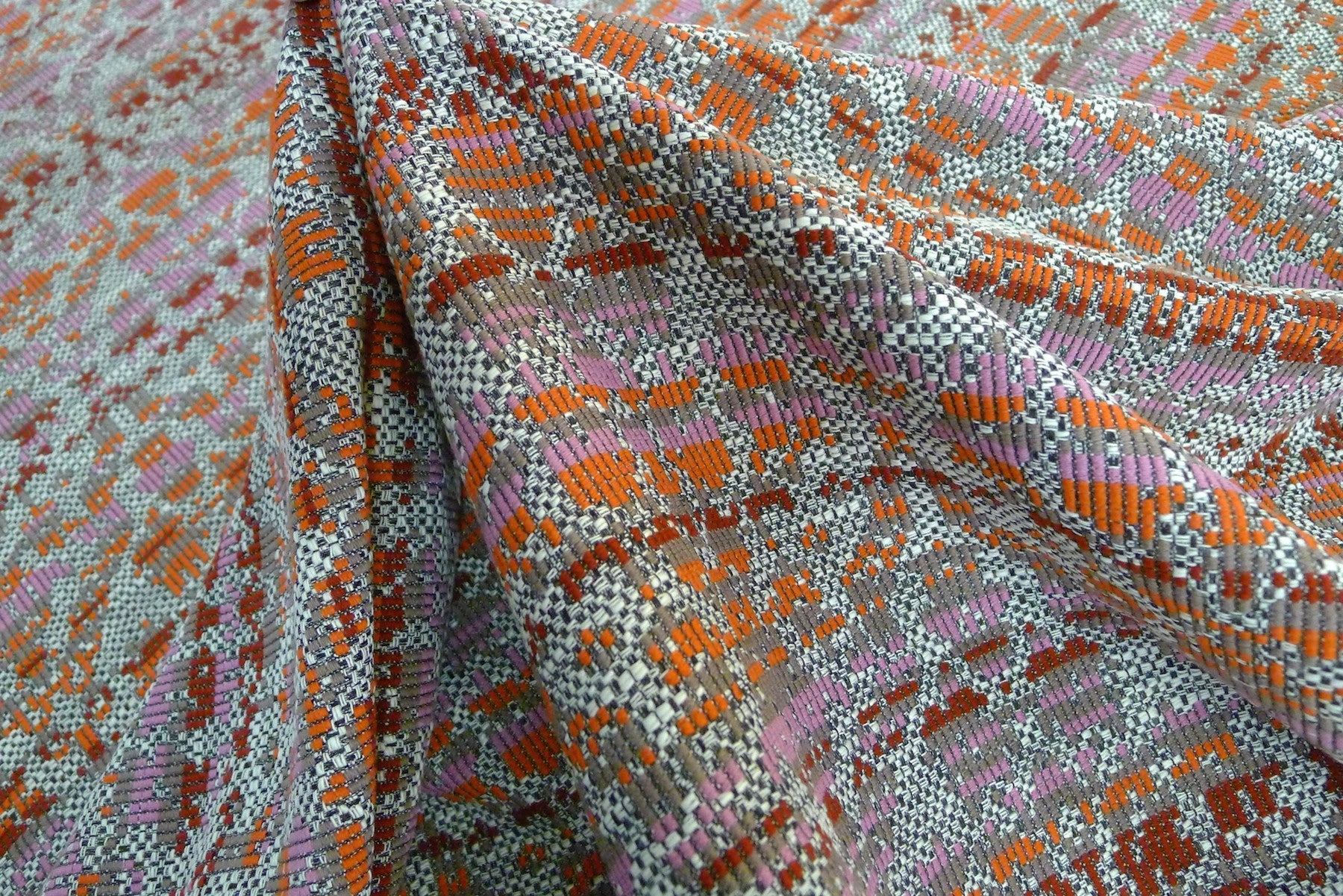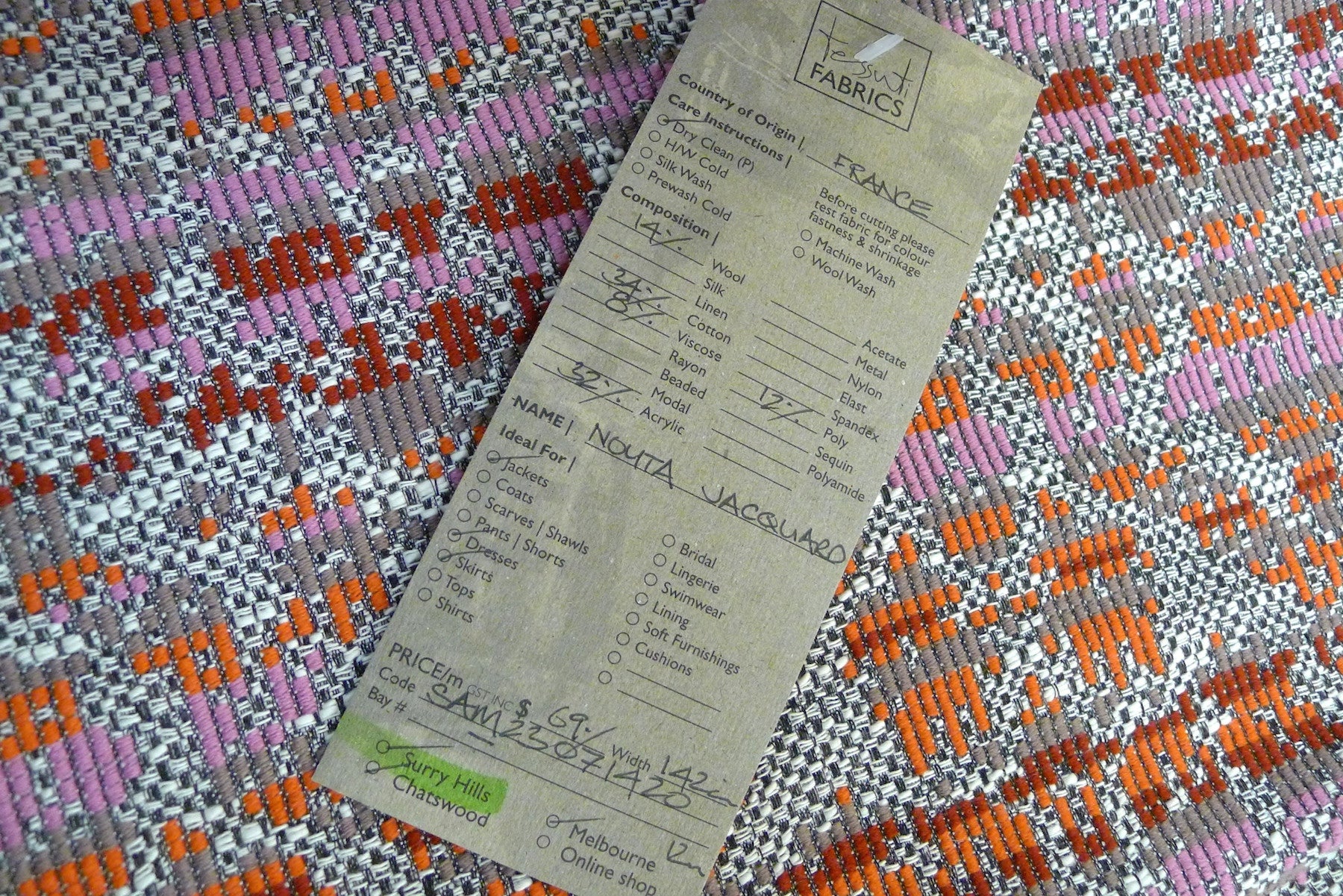 French Wool/Cotton/Viscose/Acrylic/Polyester Jacquard. Width:142cm.