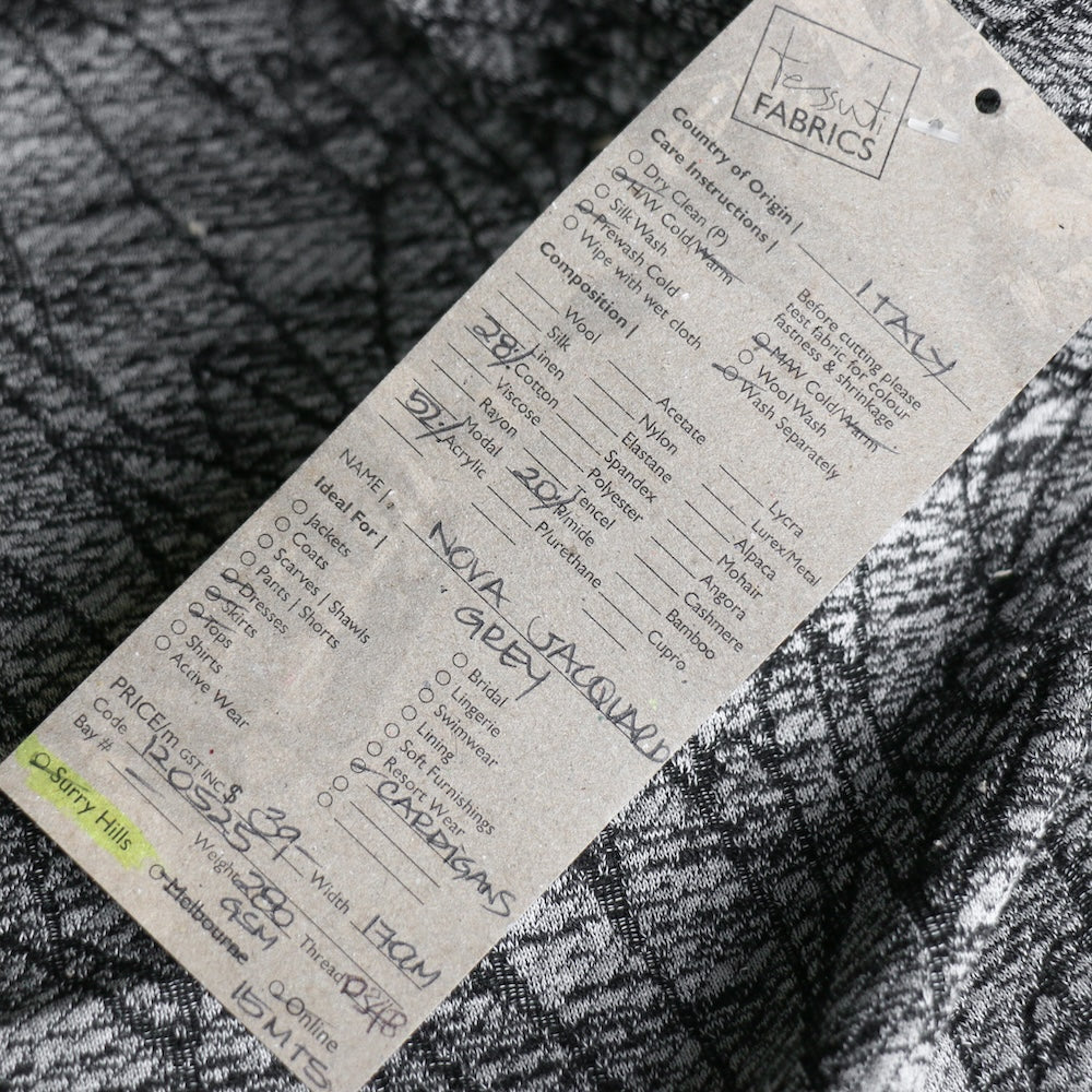 Italian grey/charcoal/black 52% acrylic 28% cotton 20% polyamide textured knit