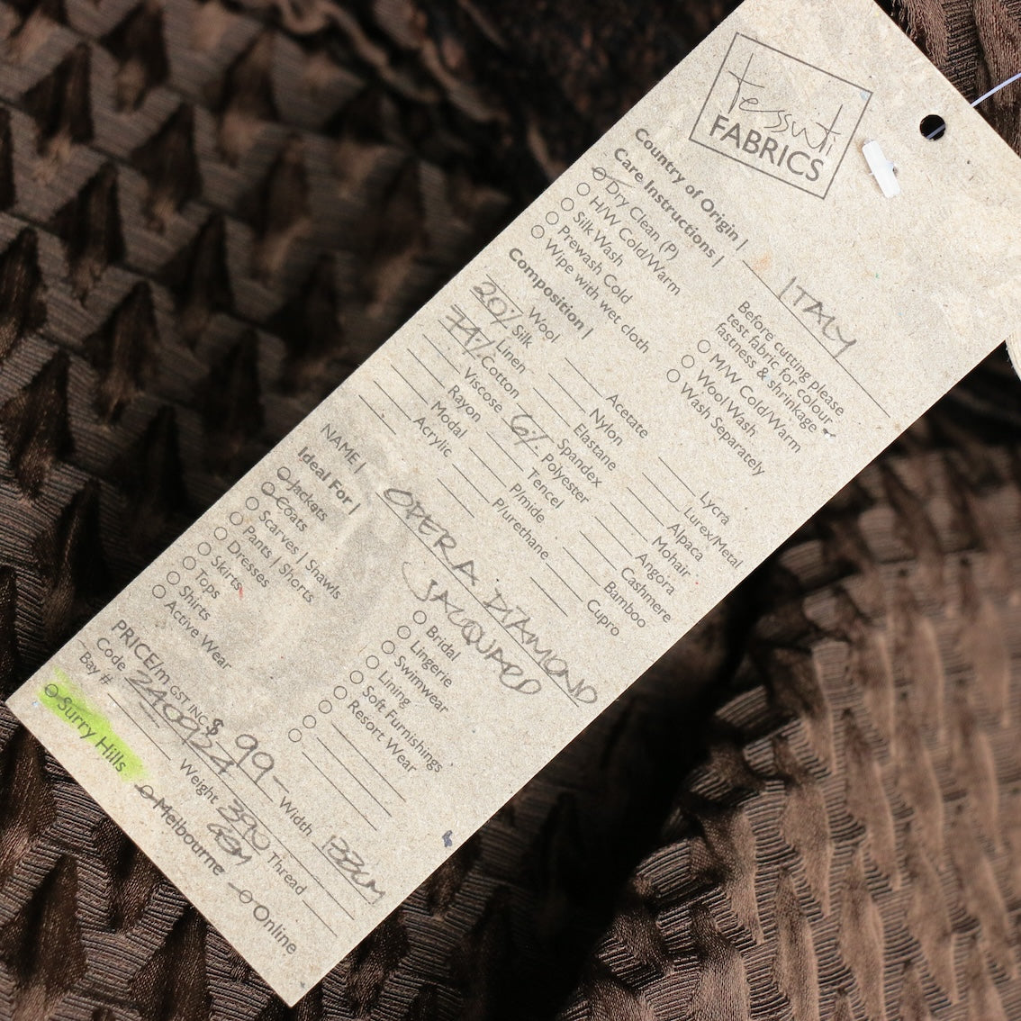 Italian chocolate 74% cotton 20% silk 6% polyester jacquard
