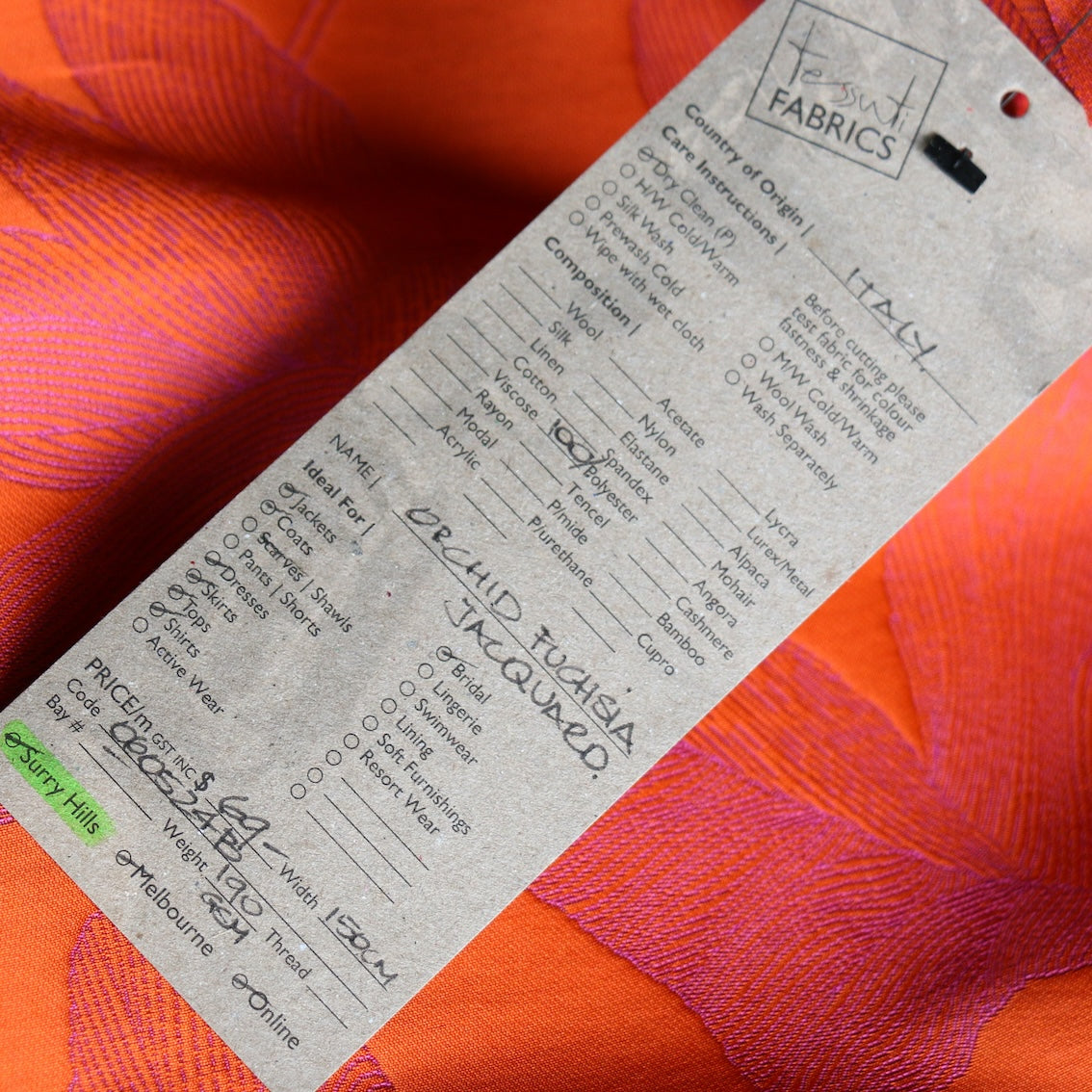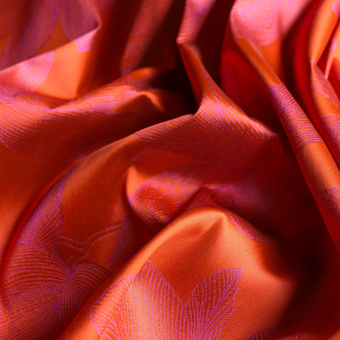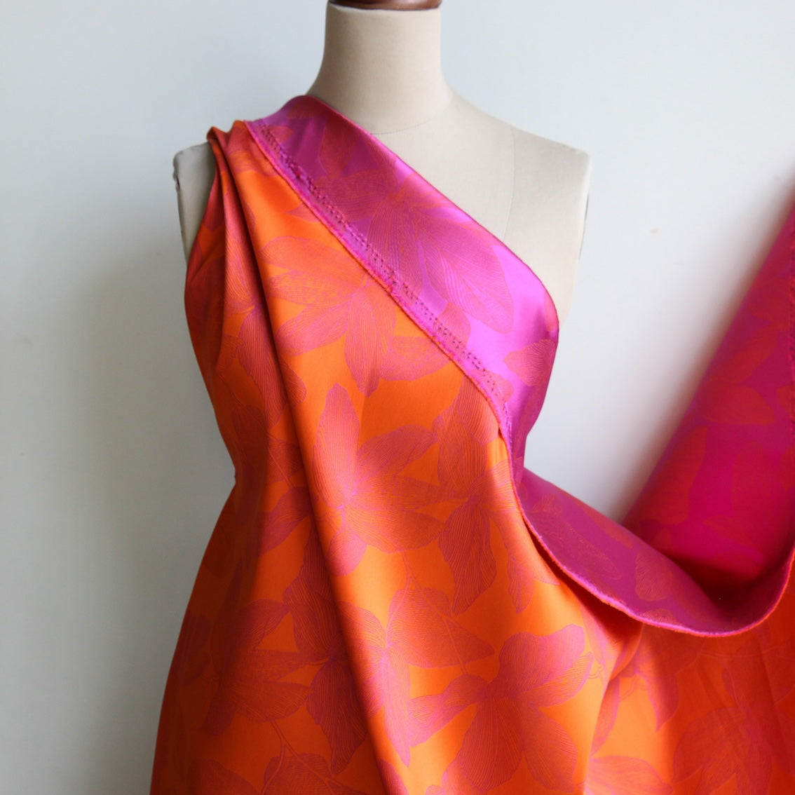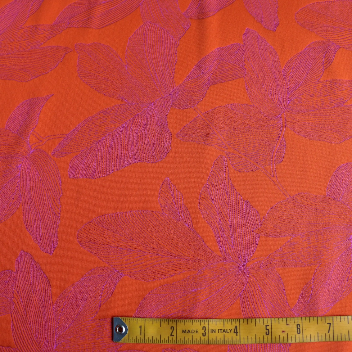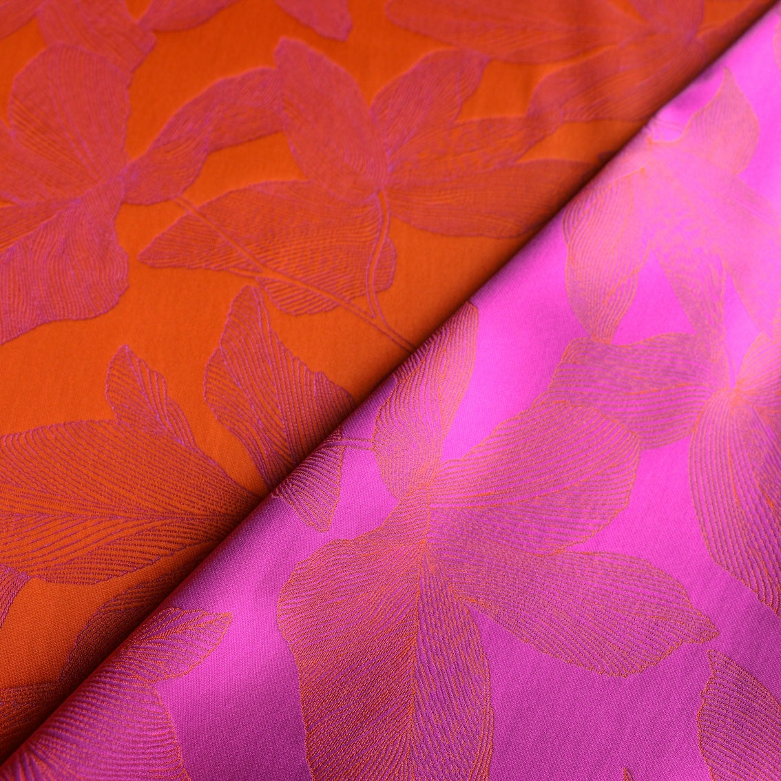 Italian designer orange/fuchsia floral double sided jacquard 100% polyester