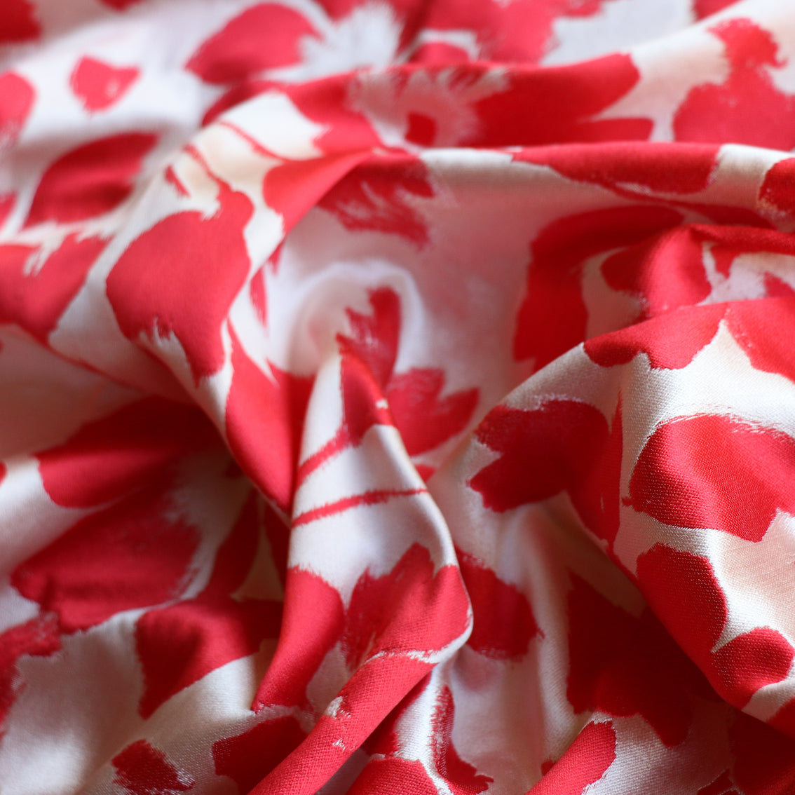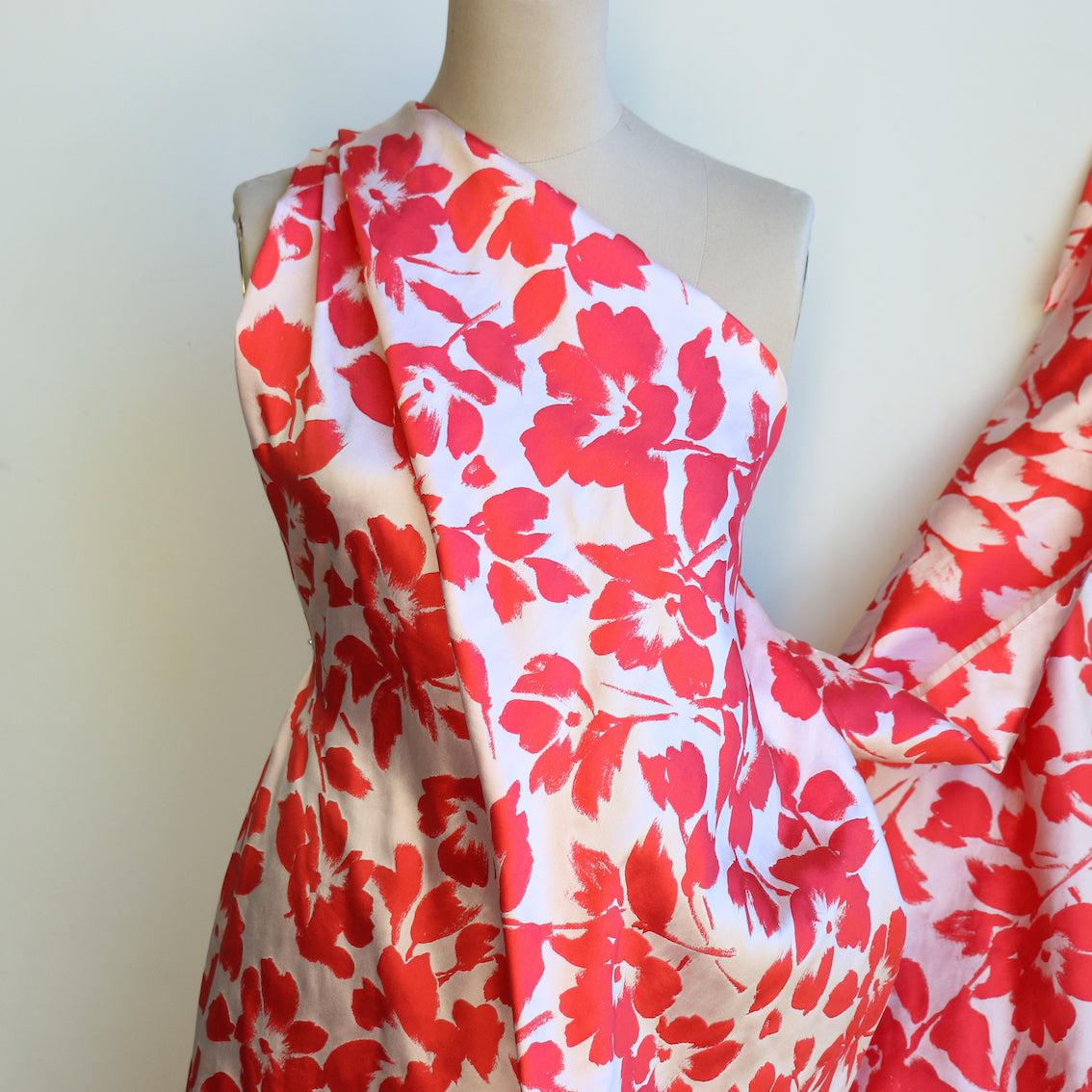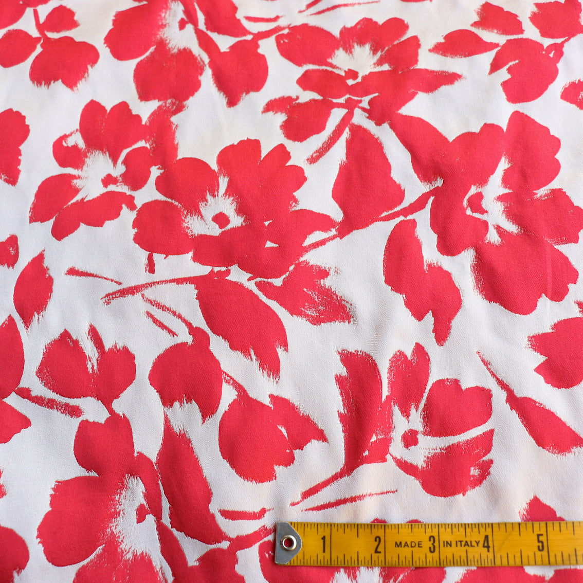 Italian designer red/chalk white polyester/polyamide floral jacquard