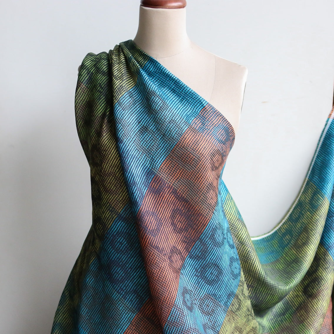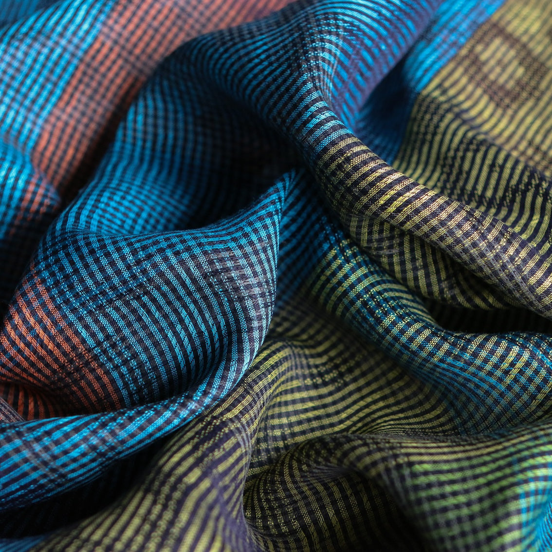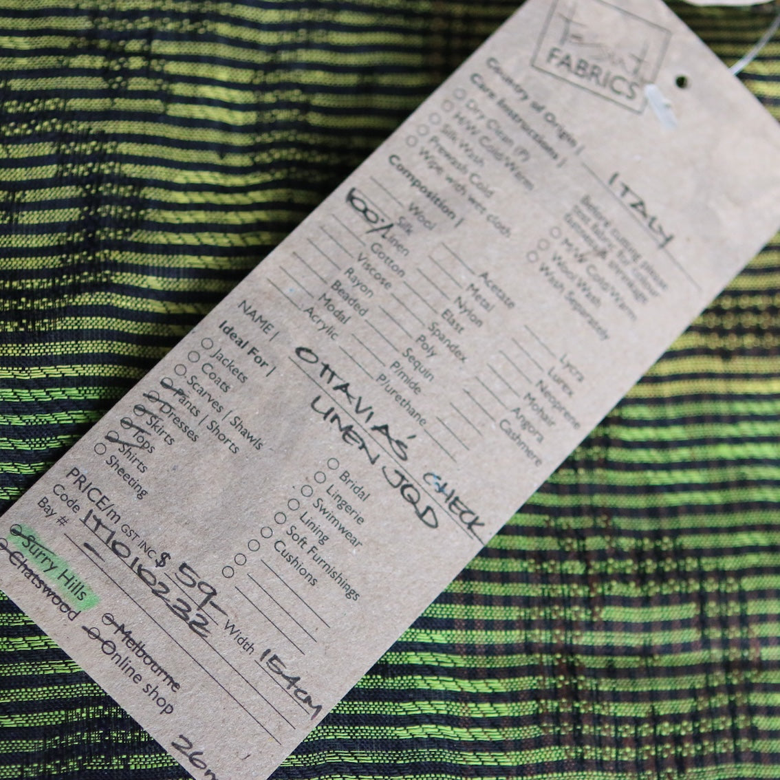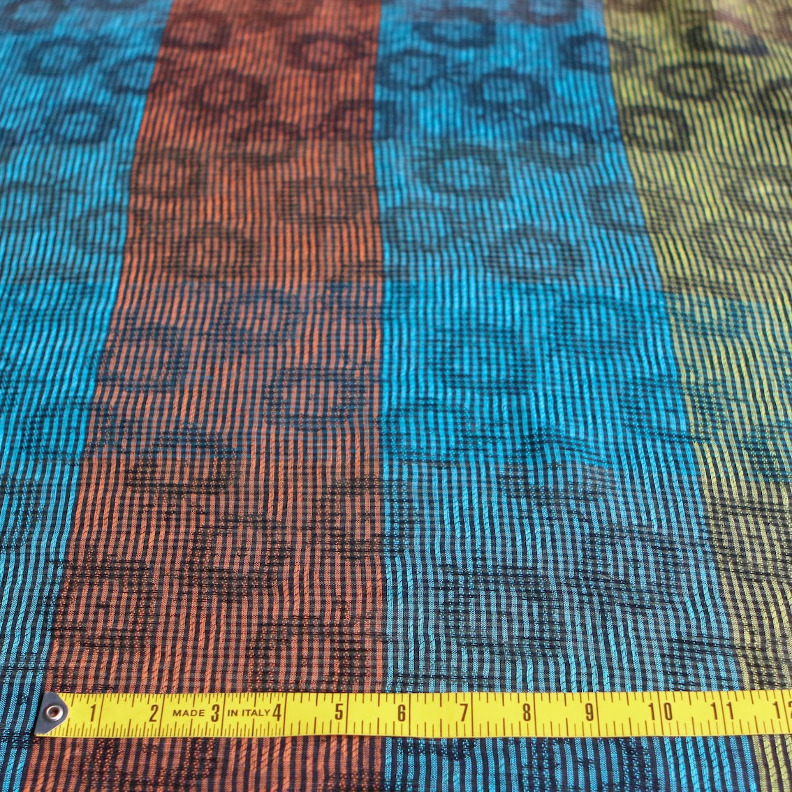 Italian black/lime/aqua/russet year-dyed striped/floral jaquard 100% linen