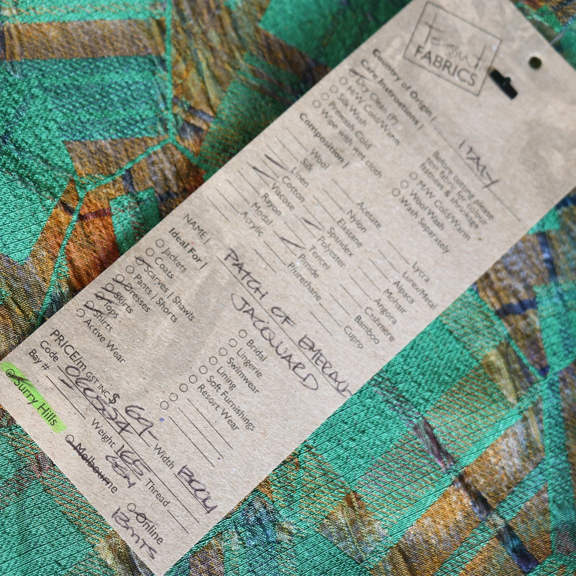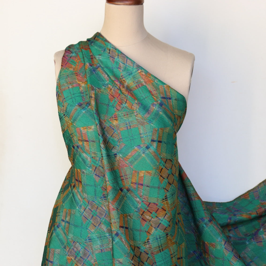 Italian designer emerald patchwork jacquard cotton/viscose/polyester/polyamide