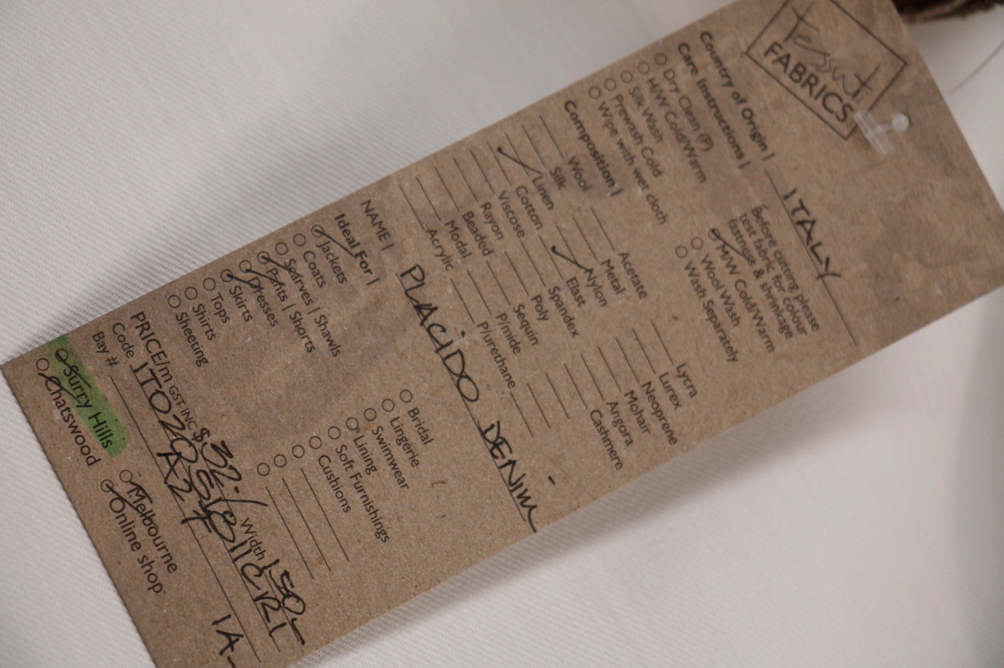 Italian medium weight cotton/elastane bone denim. Width:150cm