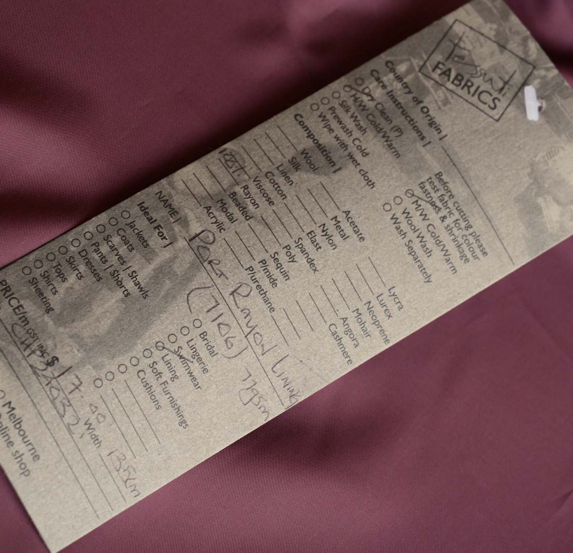 Port Rayon Lining (137cm wide)