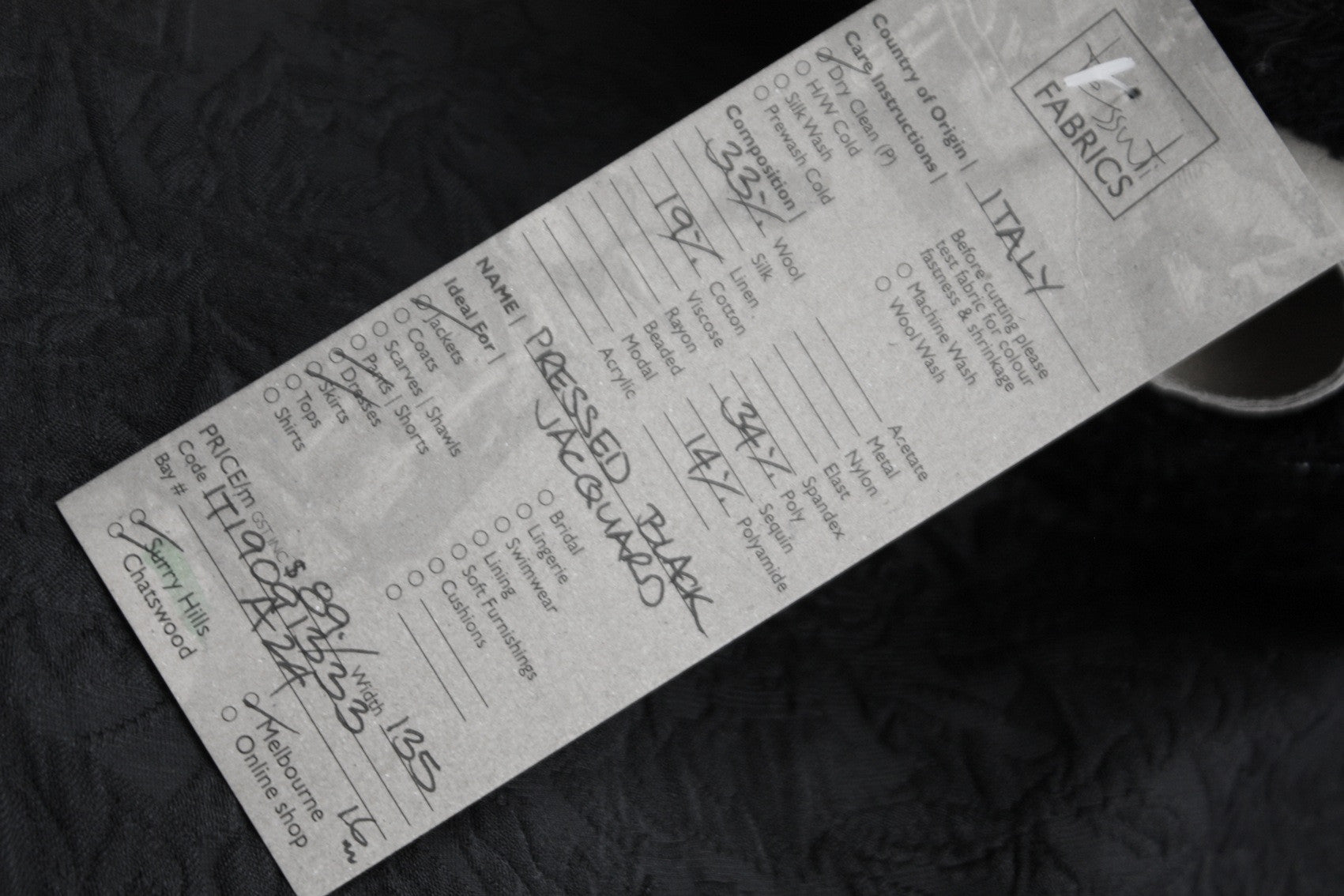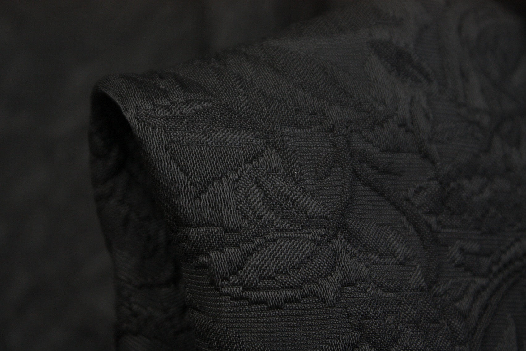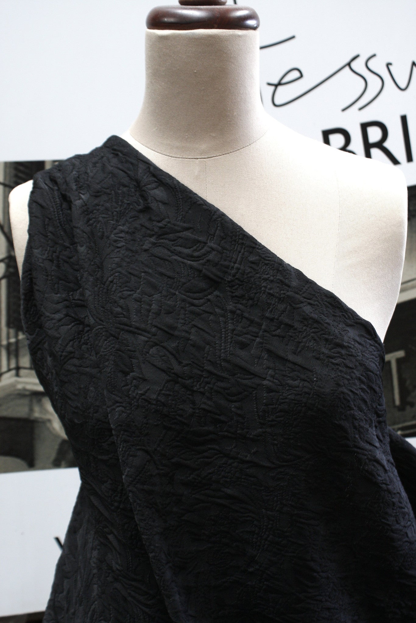 Italian 34% Polyester 33% Wool 19% Cotton 14% Polyamide Black Jacquard. Width:135cm