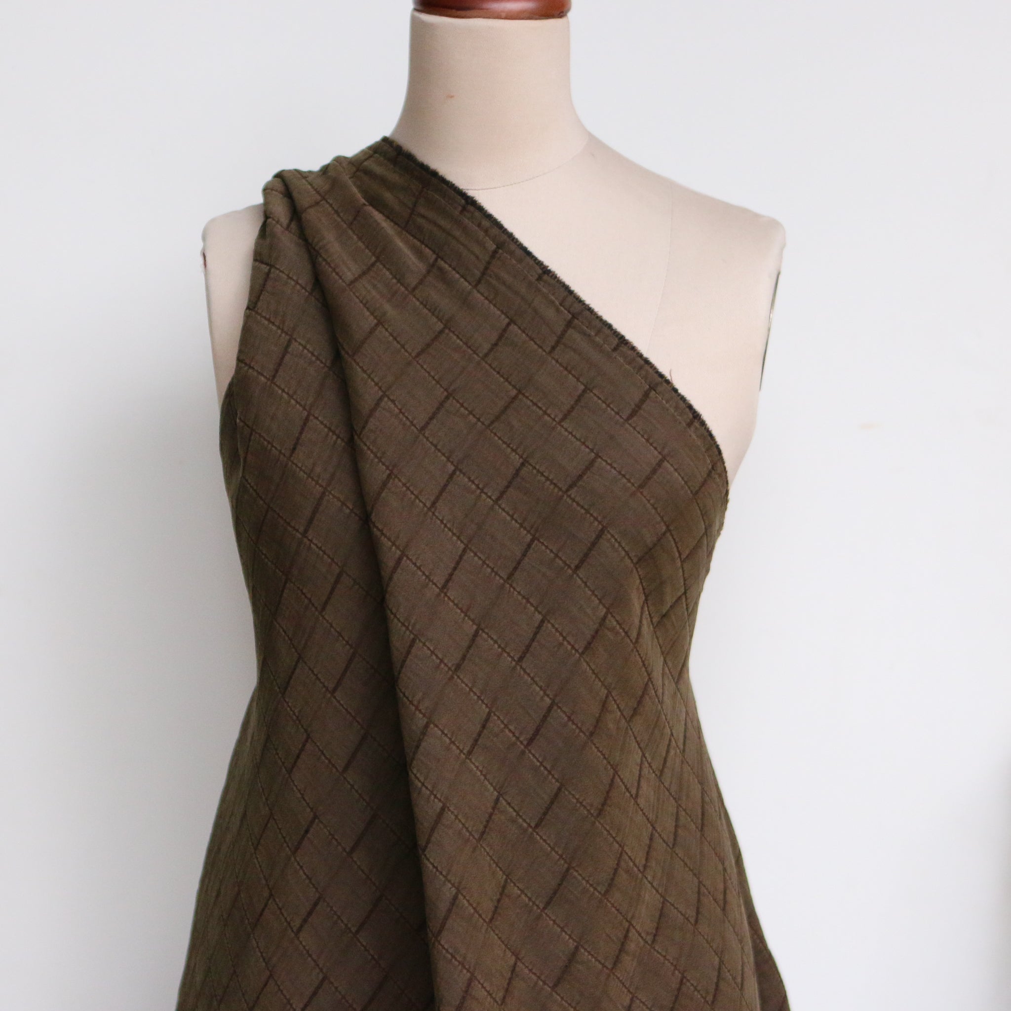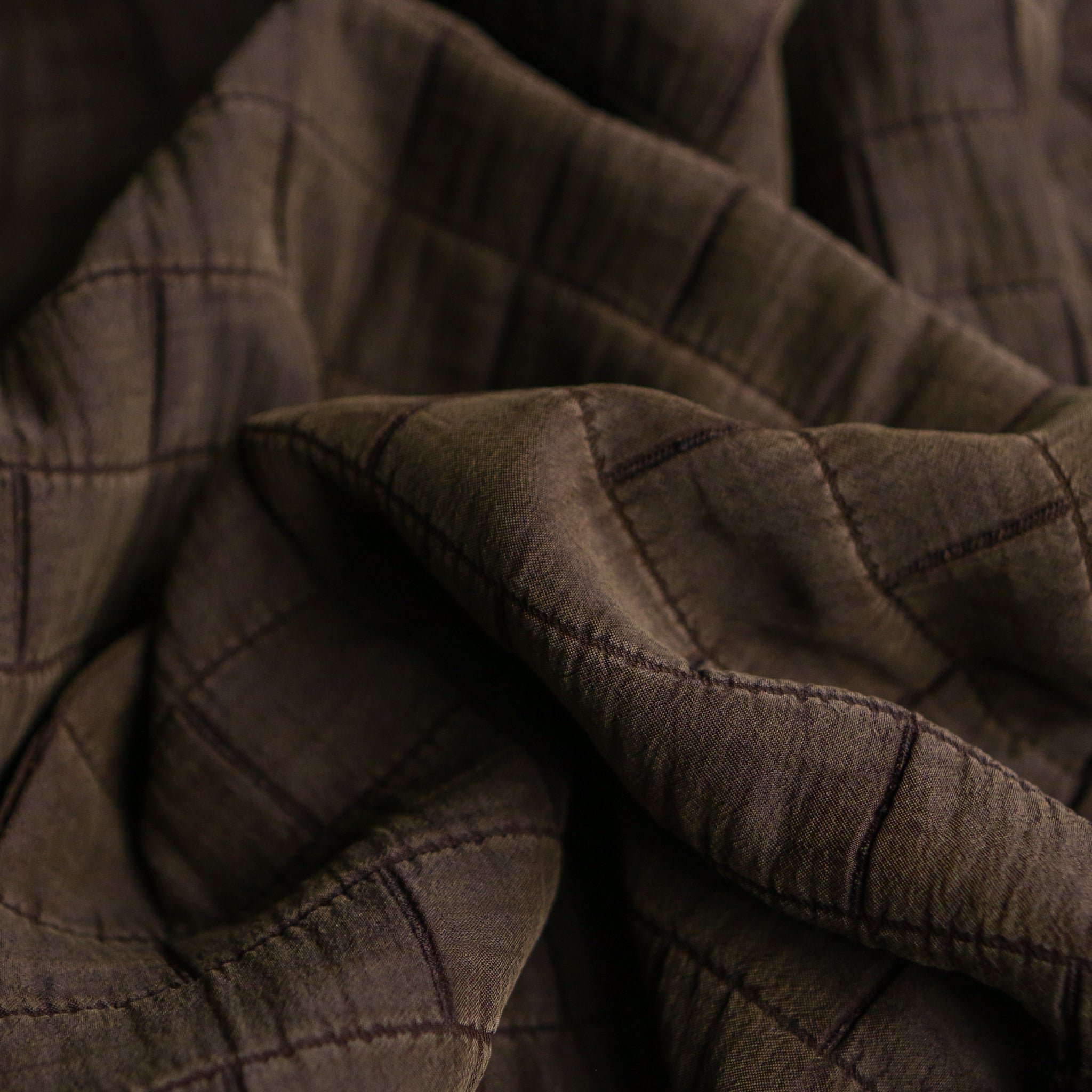 Italian designer sandwashed look olive lyocell/polyamide/polyester quilted jacquard