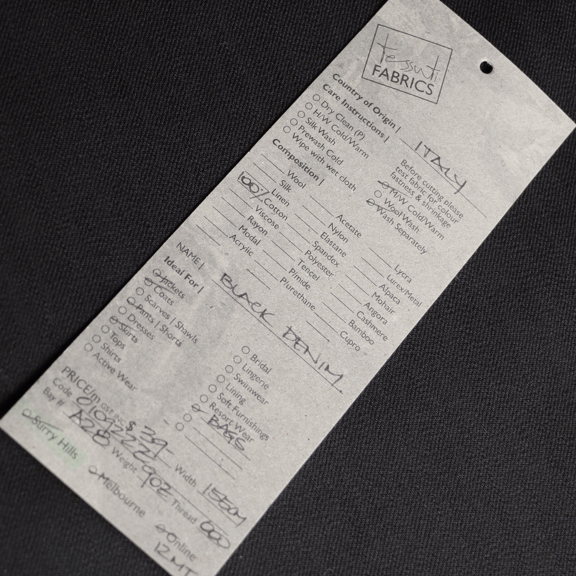 Italian black 100% cotton denim
