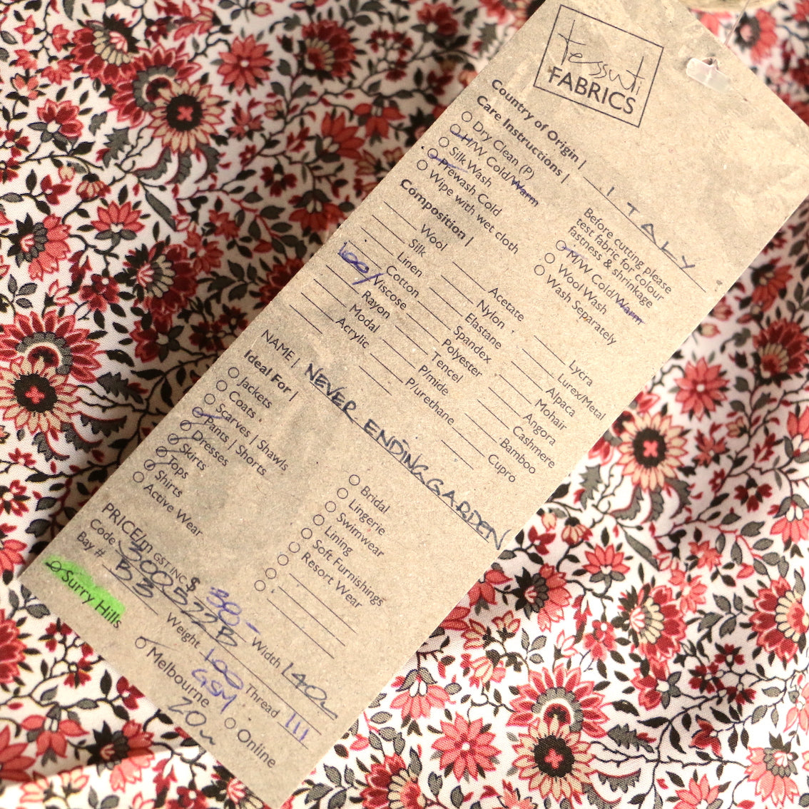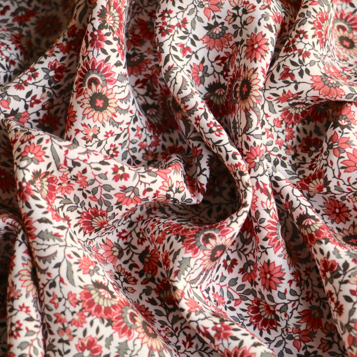 Italian designer rust/sage floral printed 100% viscose poplin