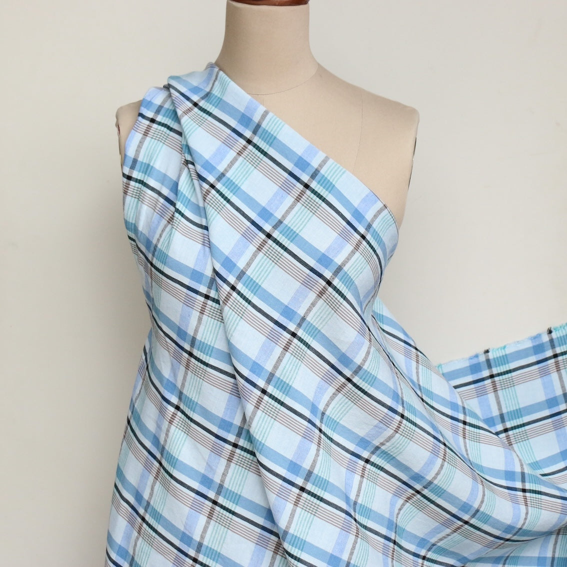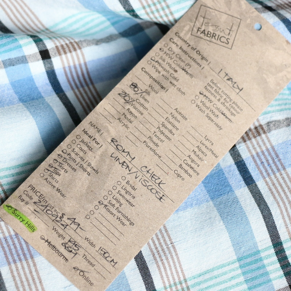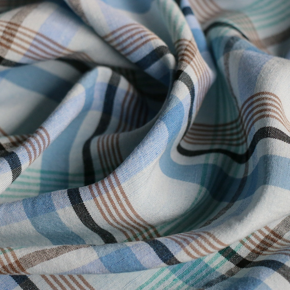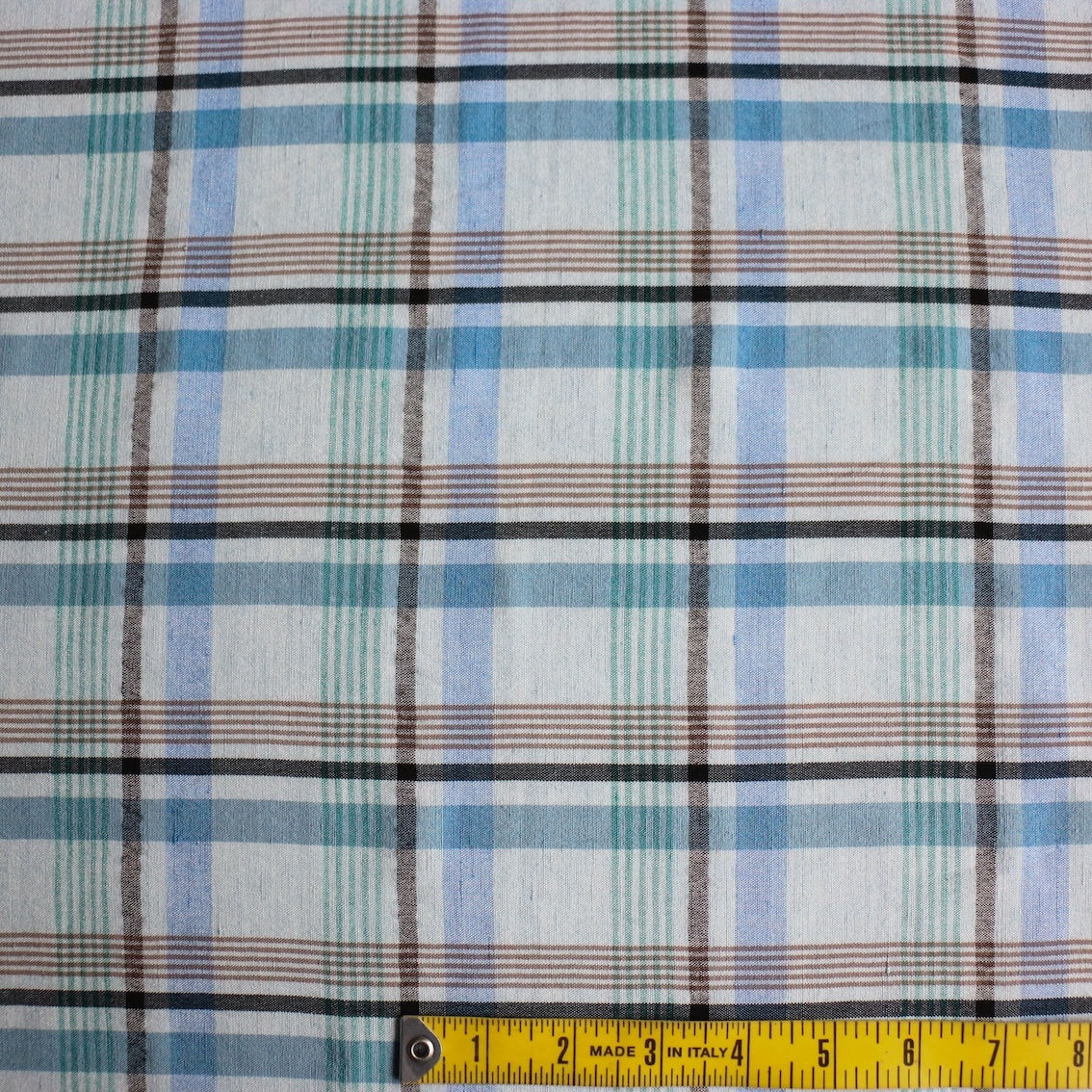 Italian blue checked yarn-dyed 80% linen 20% viscose