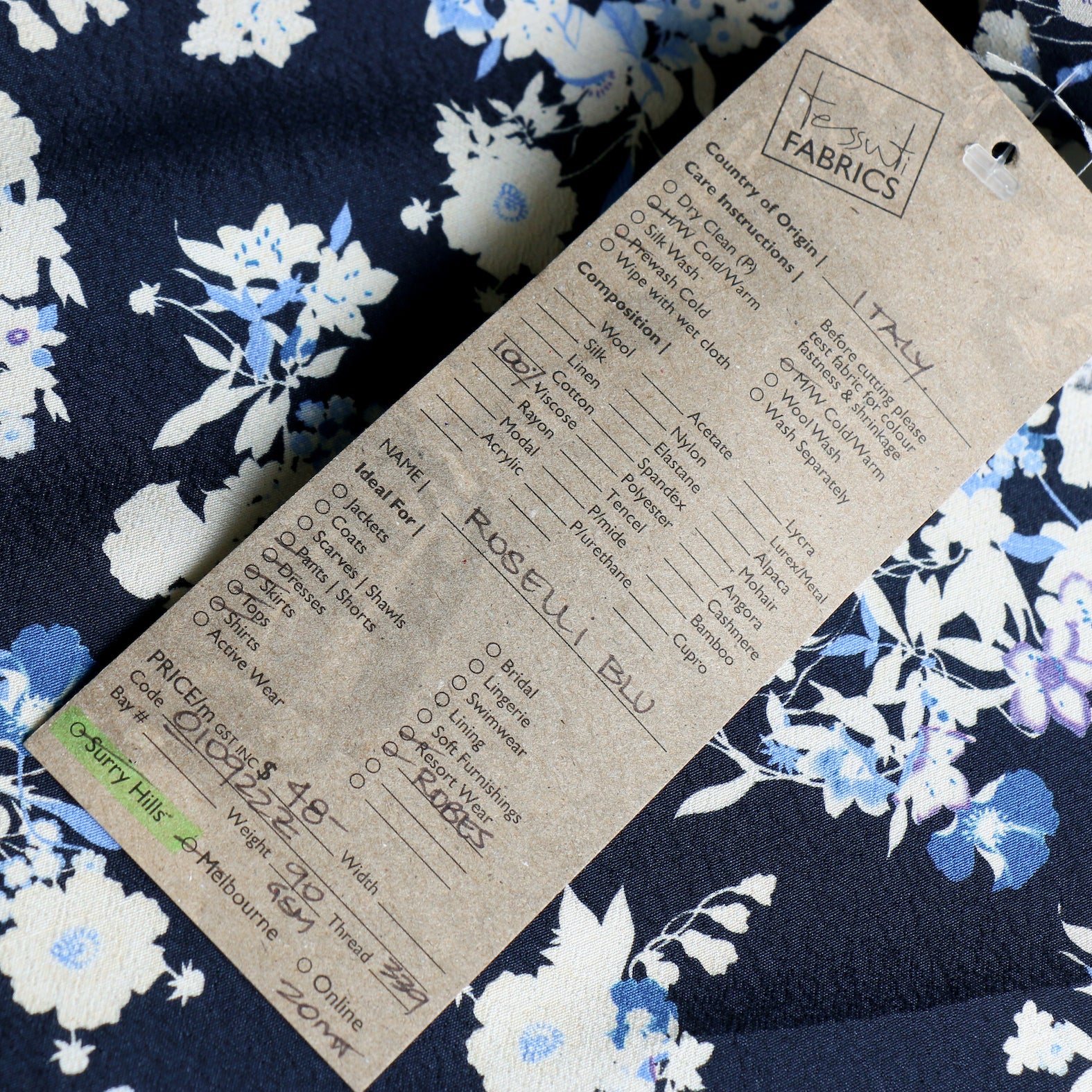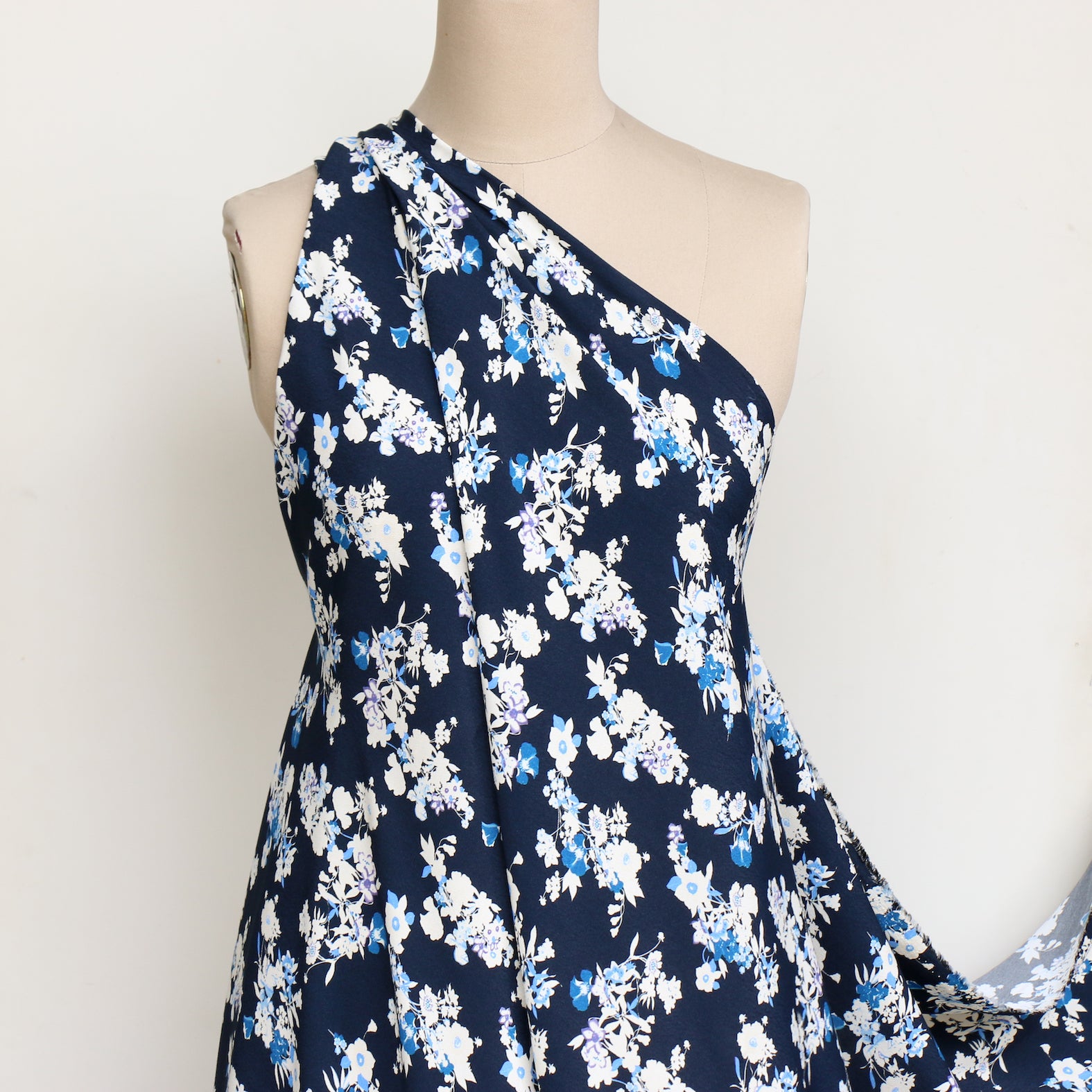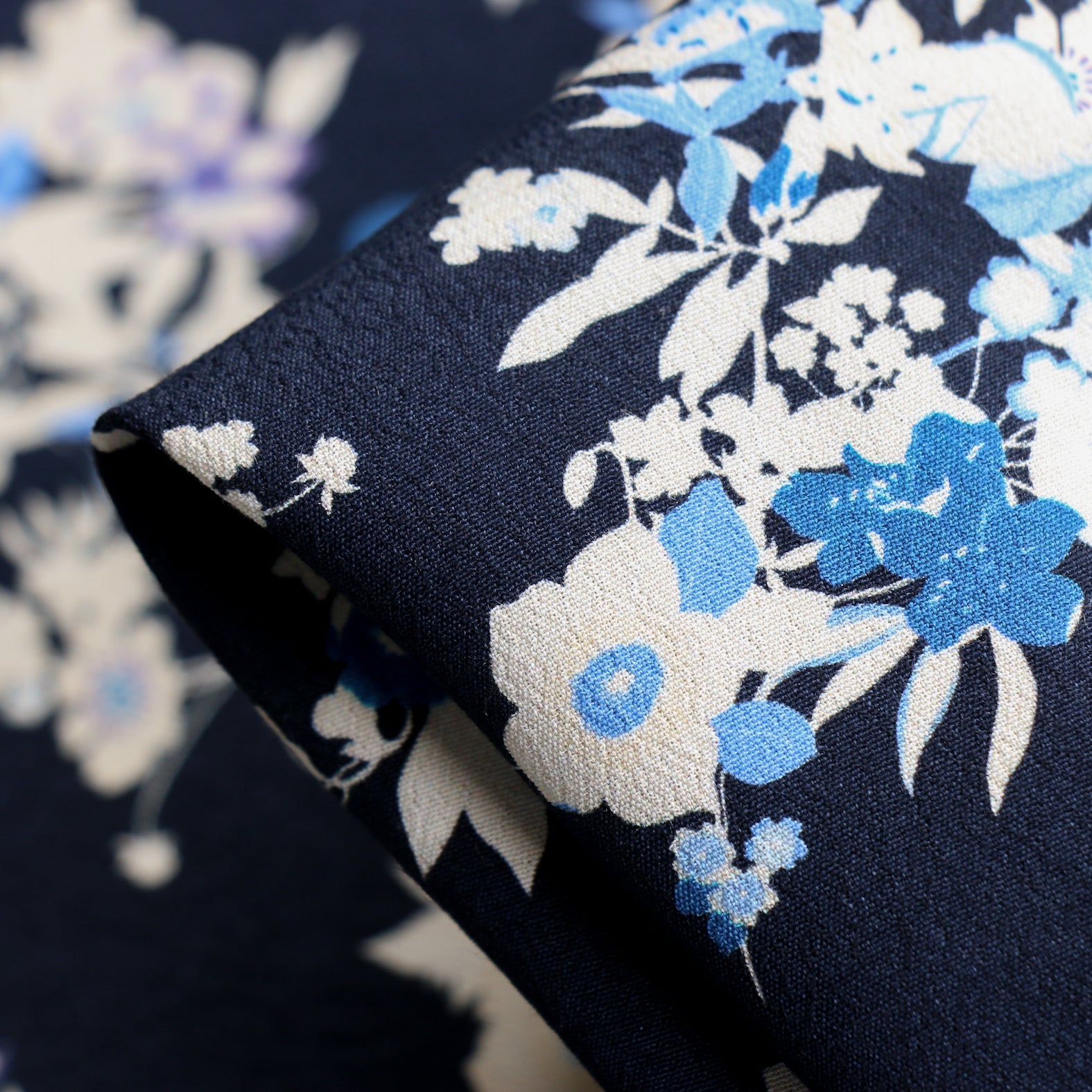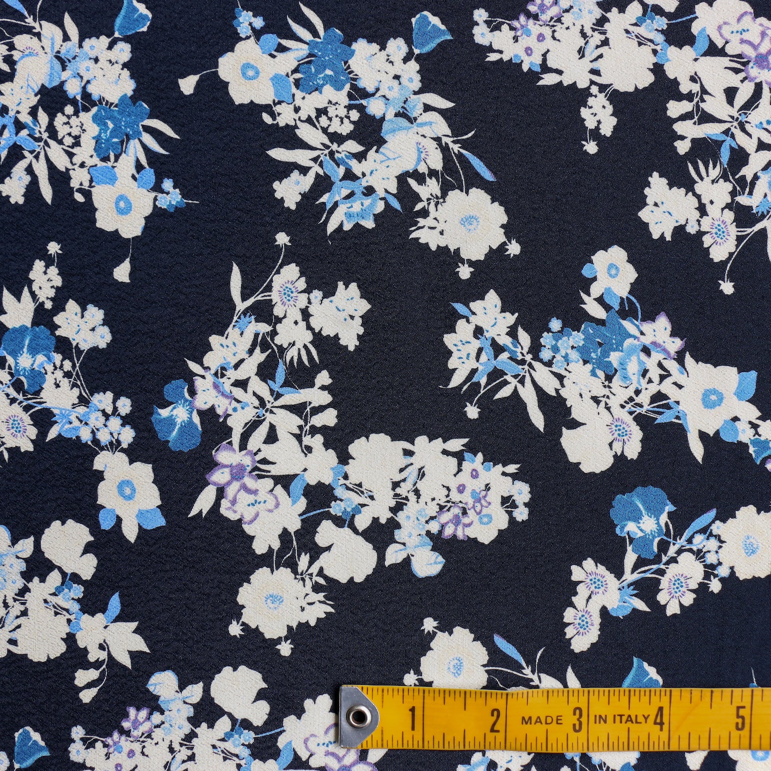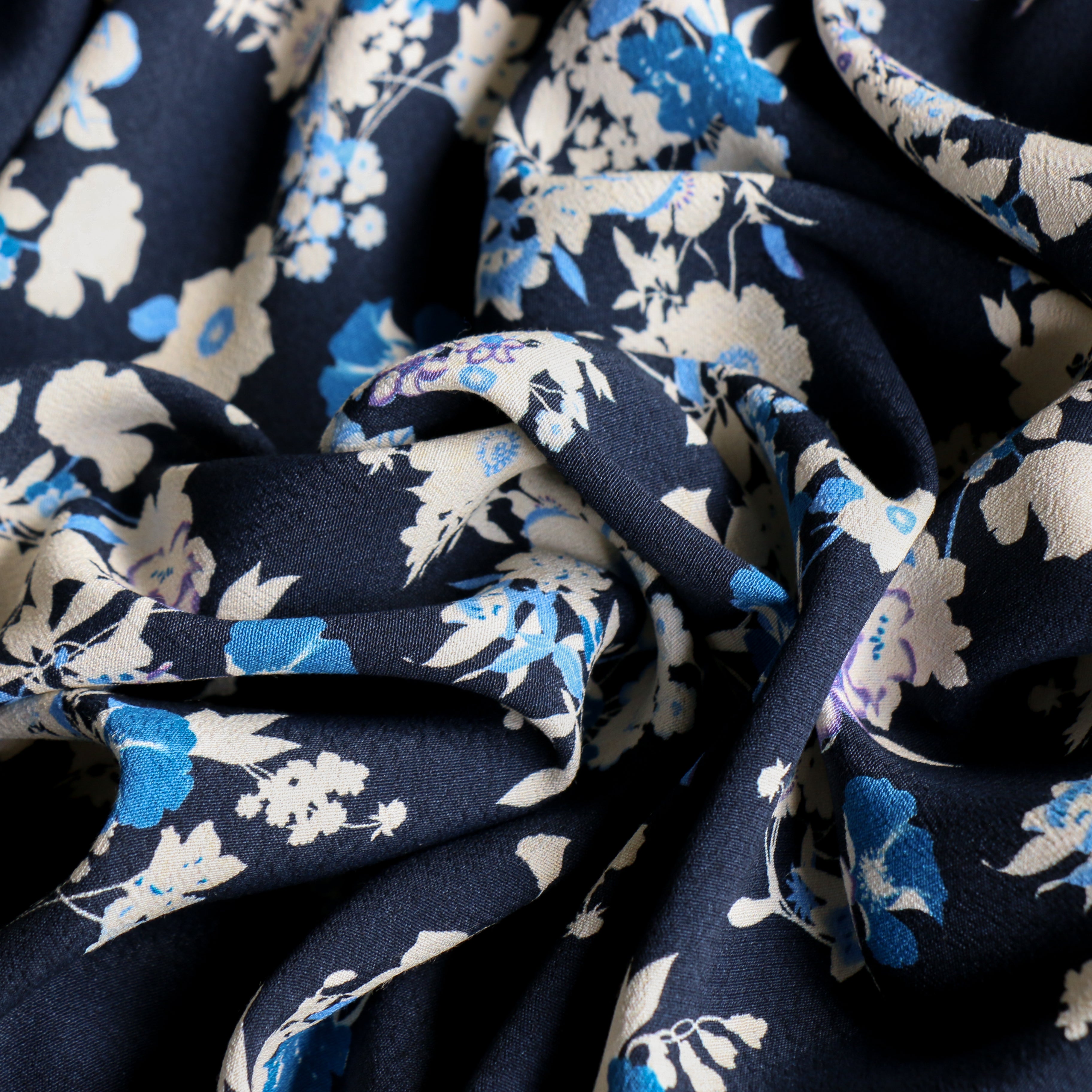 Navy/ivory/blue floral printed 100% viscose crepe