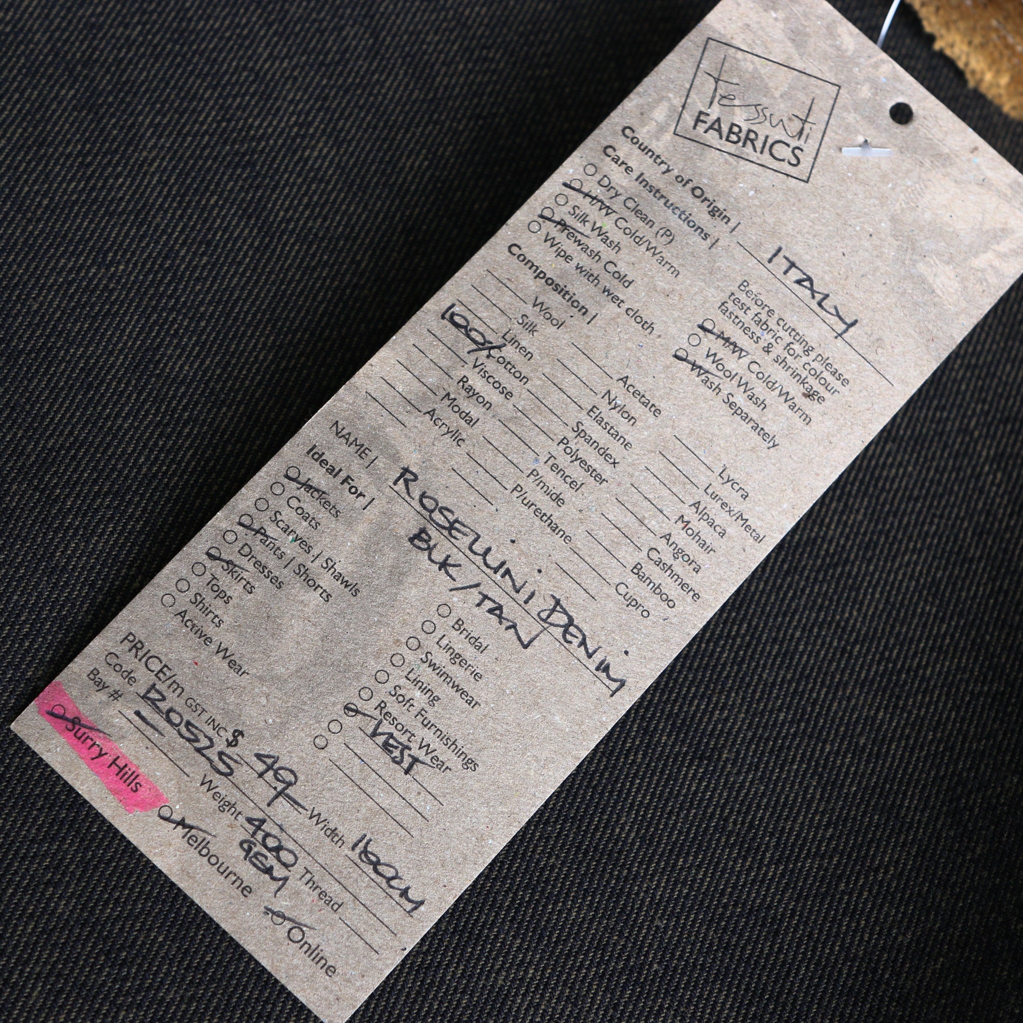 Italian black/tan 100% cotton denim