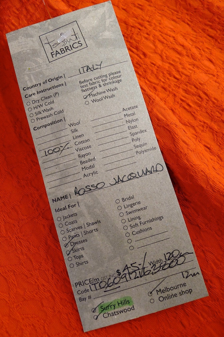 Italian soft 100% Cotton Jacquard in a orange red. Width:120cm
