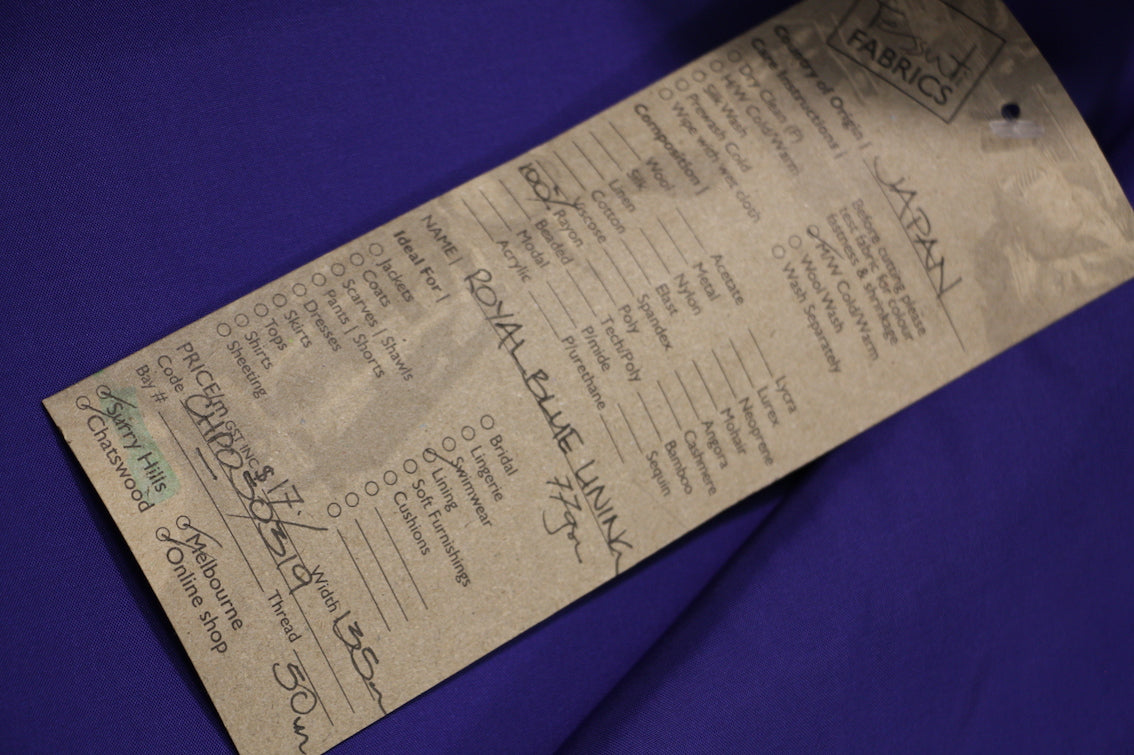 Royal blue Japanese 100% bemberg rayon lining. Width:137cm