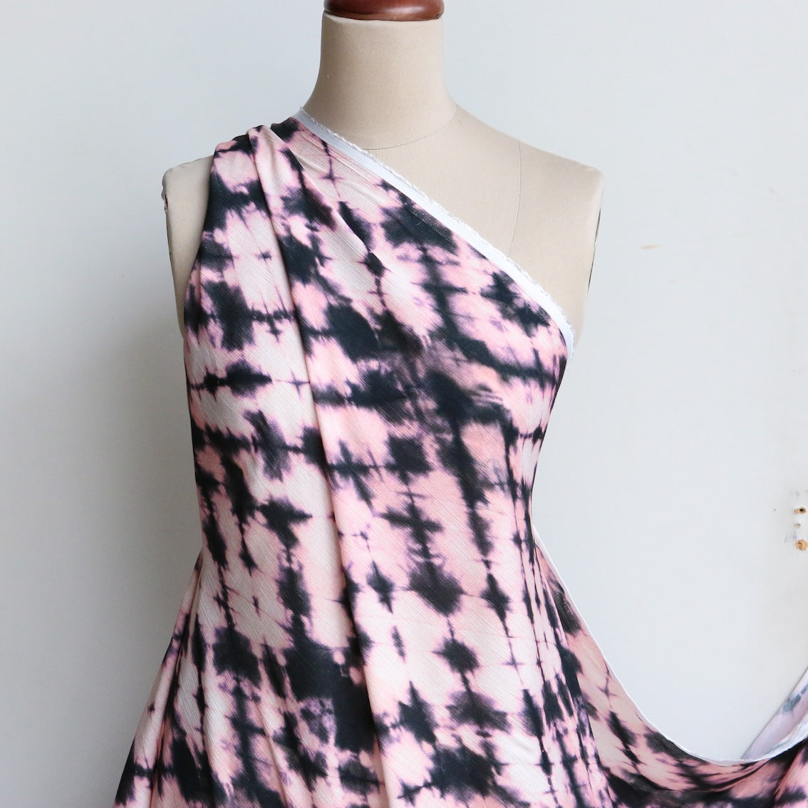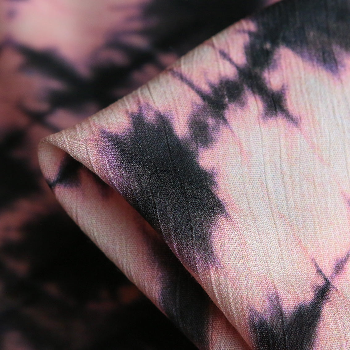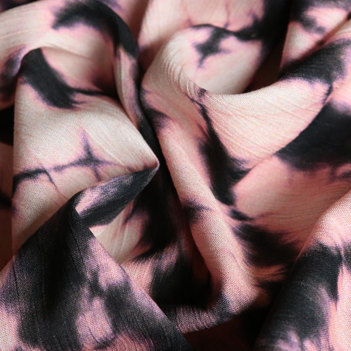 Italian pink/black tie dye printed 100% viscose crinkle