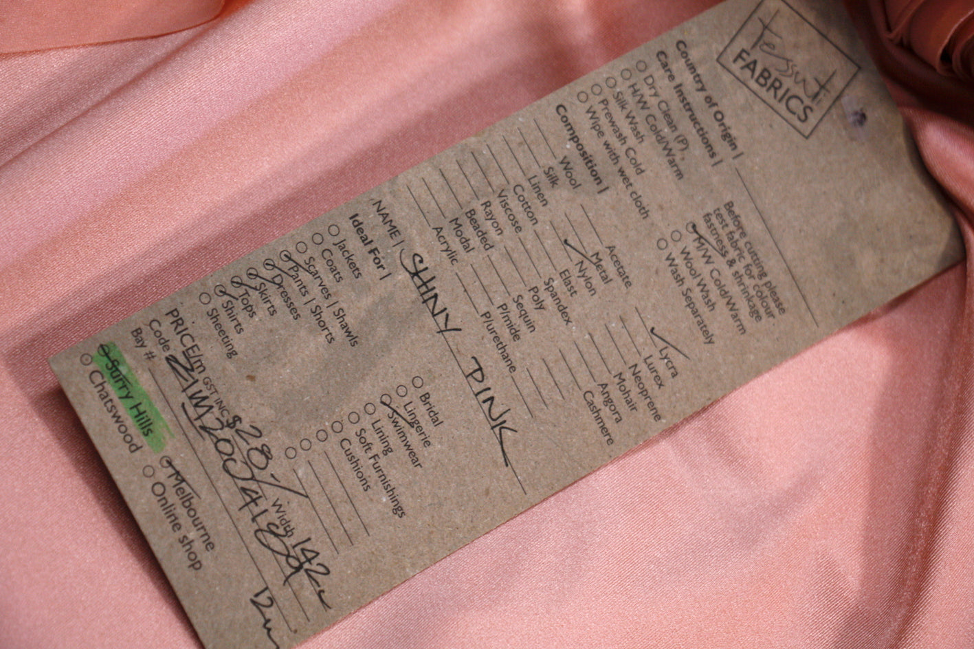 Designer peachy pink nylon/lycra swimwear fabric. Width: 142cm