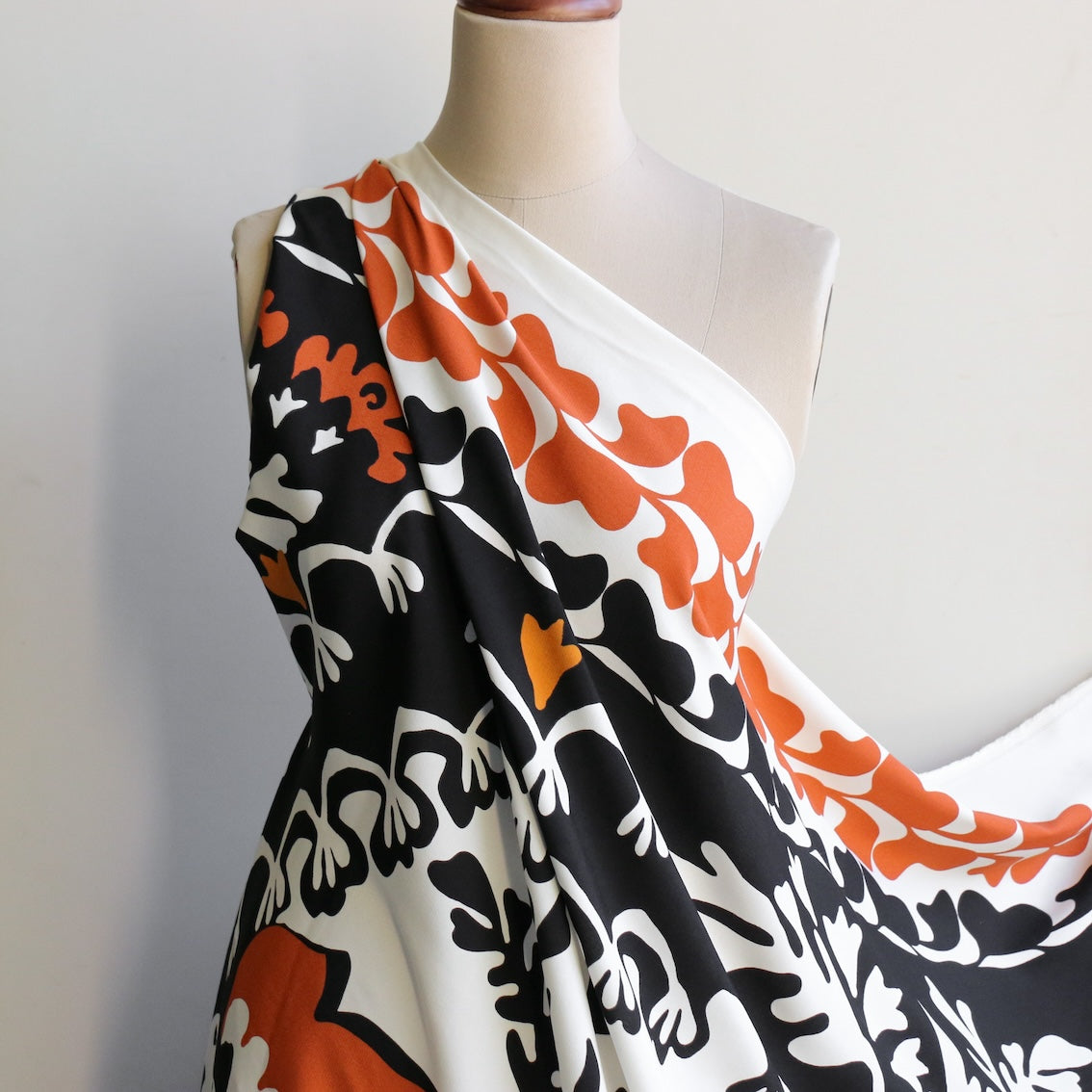 This drapey printed viscose is ideal for dresses, tops, shirts, skirts and flowy pants.