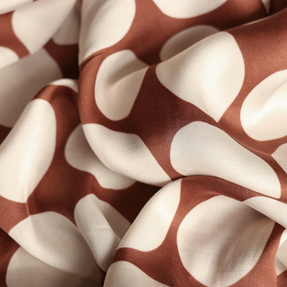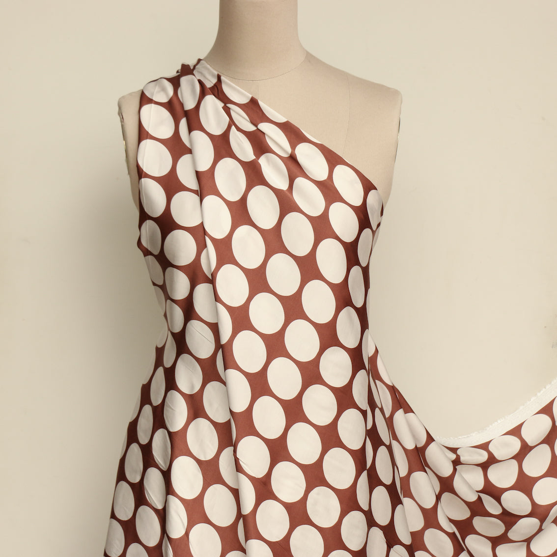 Italian designer toffee/ivory jumbo spot 100% viscose sateen