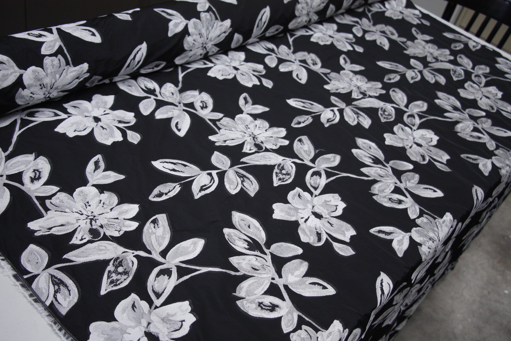 Black/Silver Grey 100% Polyester Brocade Width:140cm