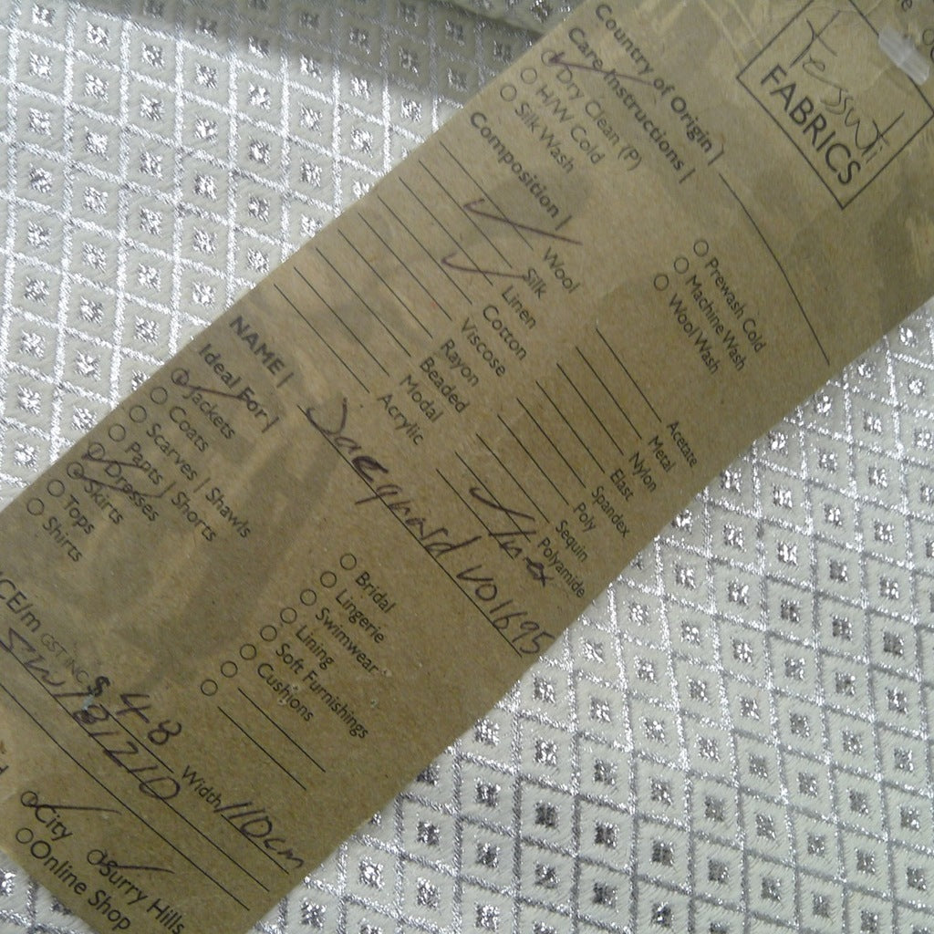 Silk, Cotton and Lurex jacquard, 110cm wide.