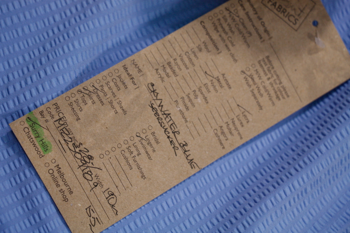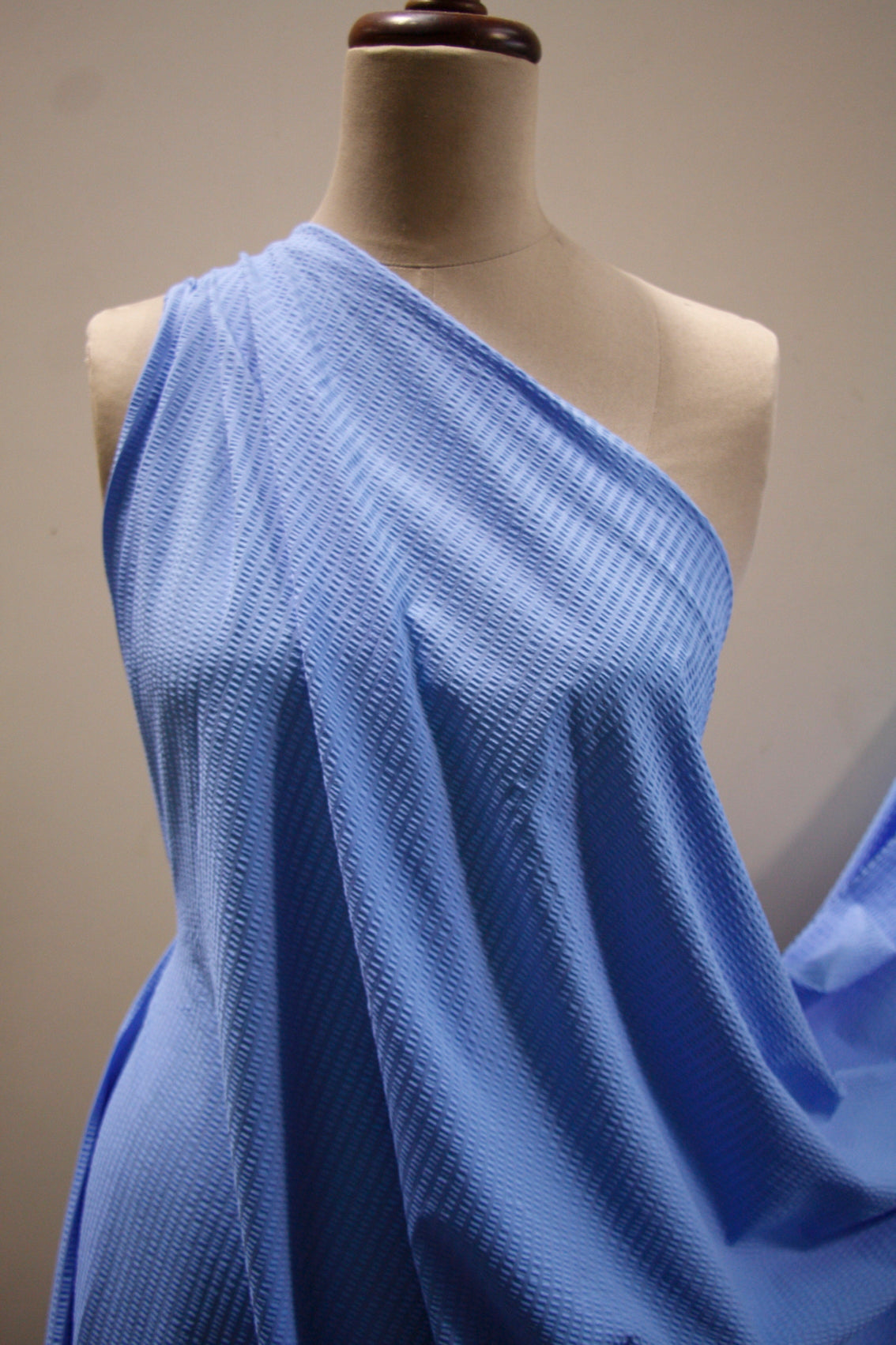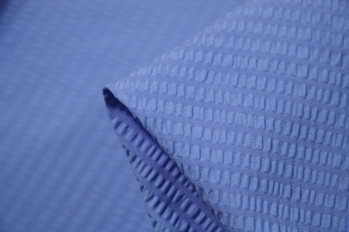 Designer blue seersucker nylon/lycra swimwear fabric. Width:190cm