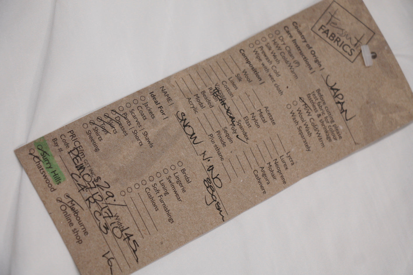 White Japanese technical 100% polyester. 145cm wide. Weight: 88gsm