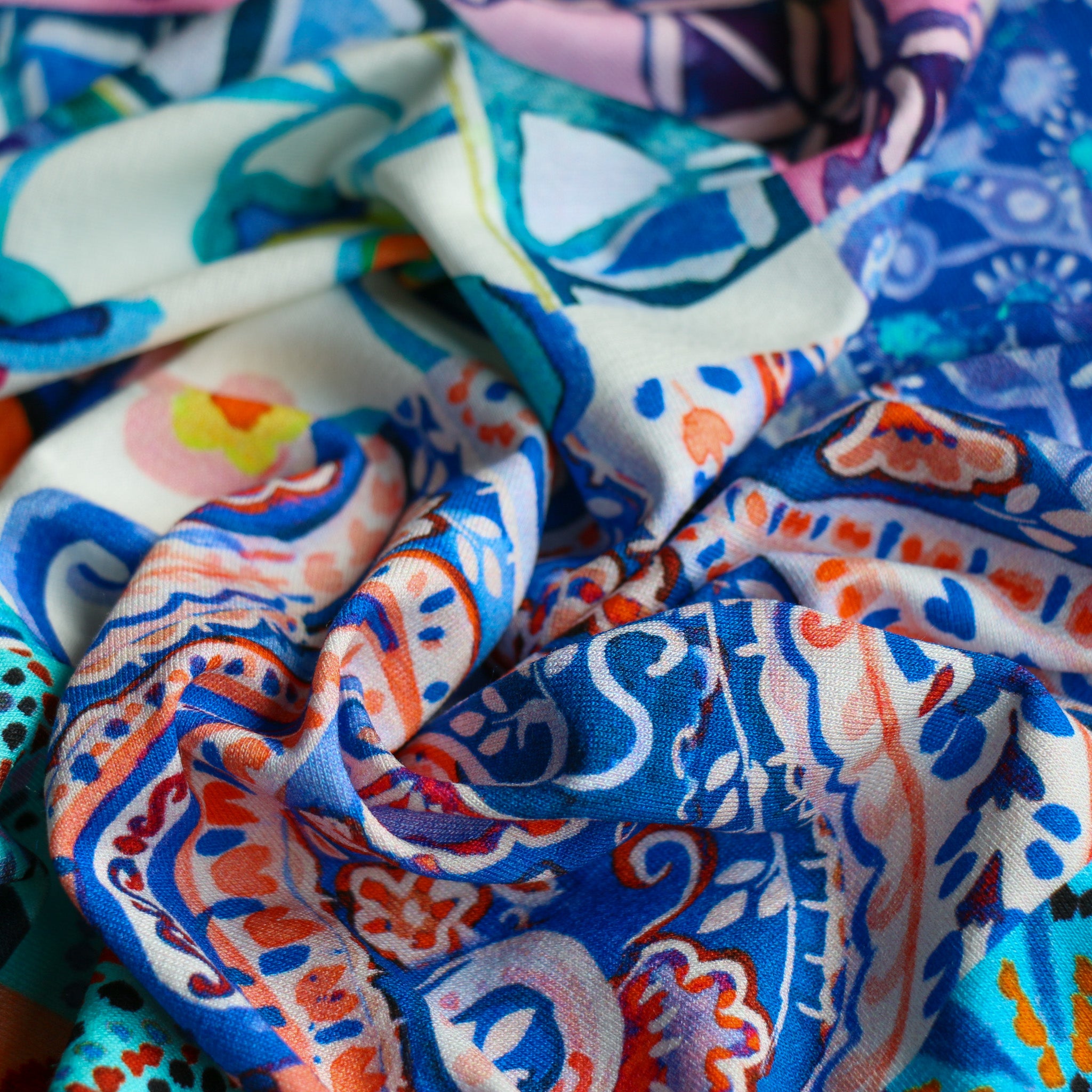 Spello Mosaic Aqua Viscose Jersey