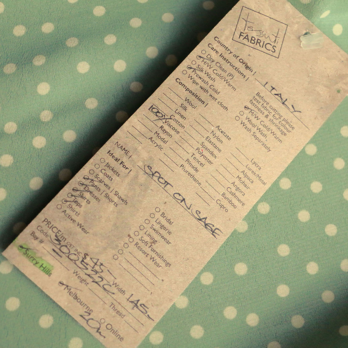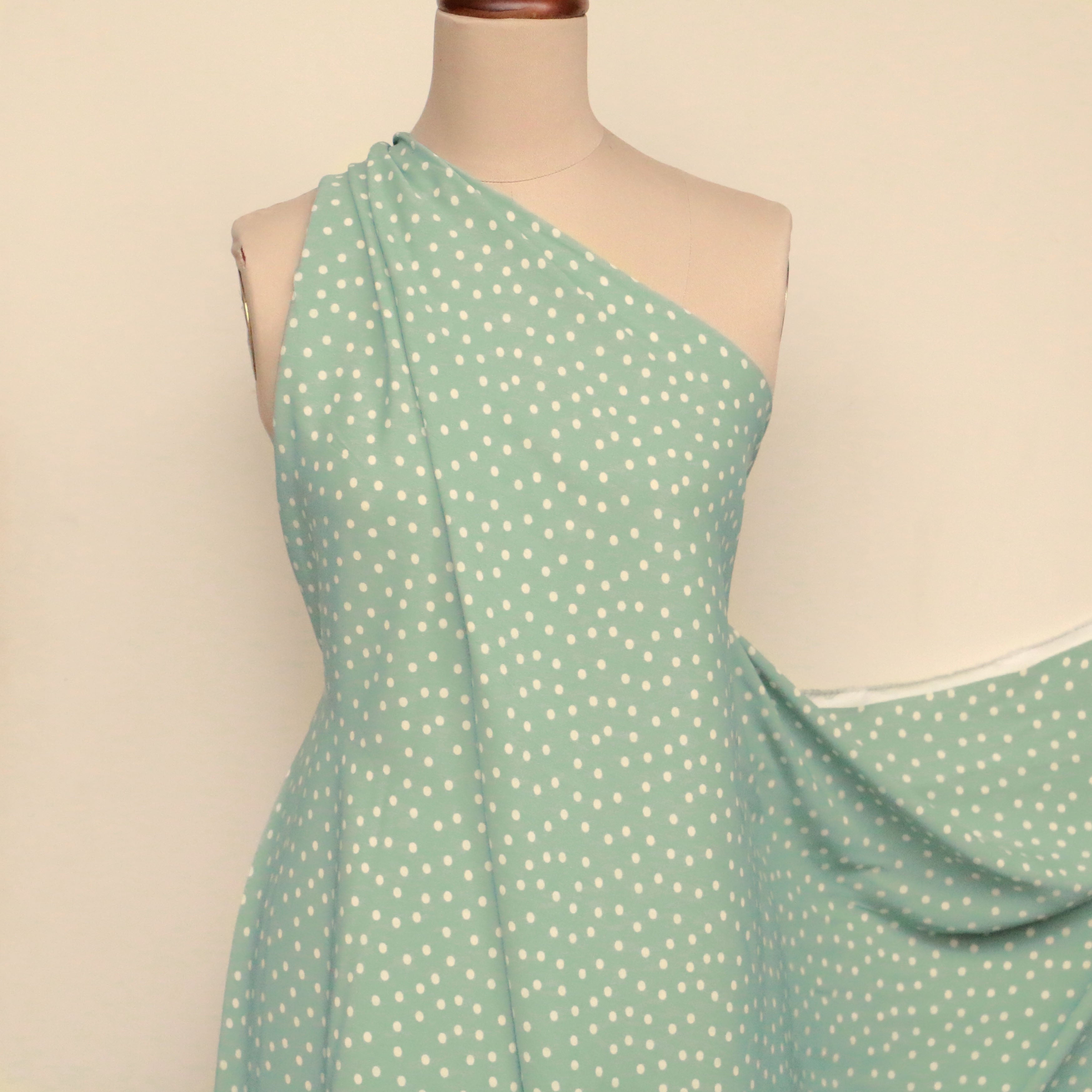 Italian designer sage green/ivory spot printed 100% viscose crepe