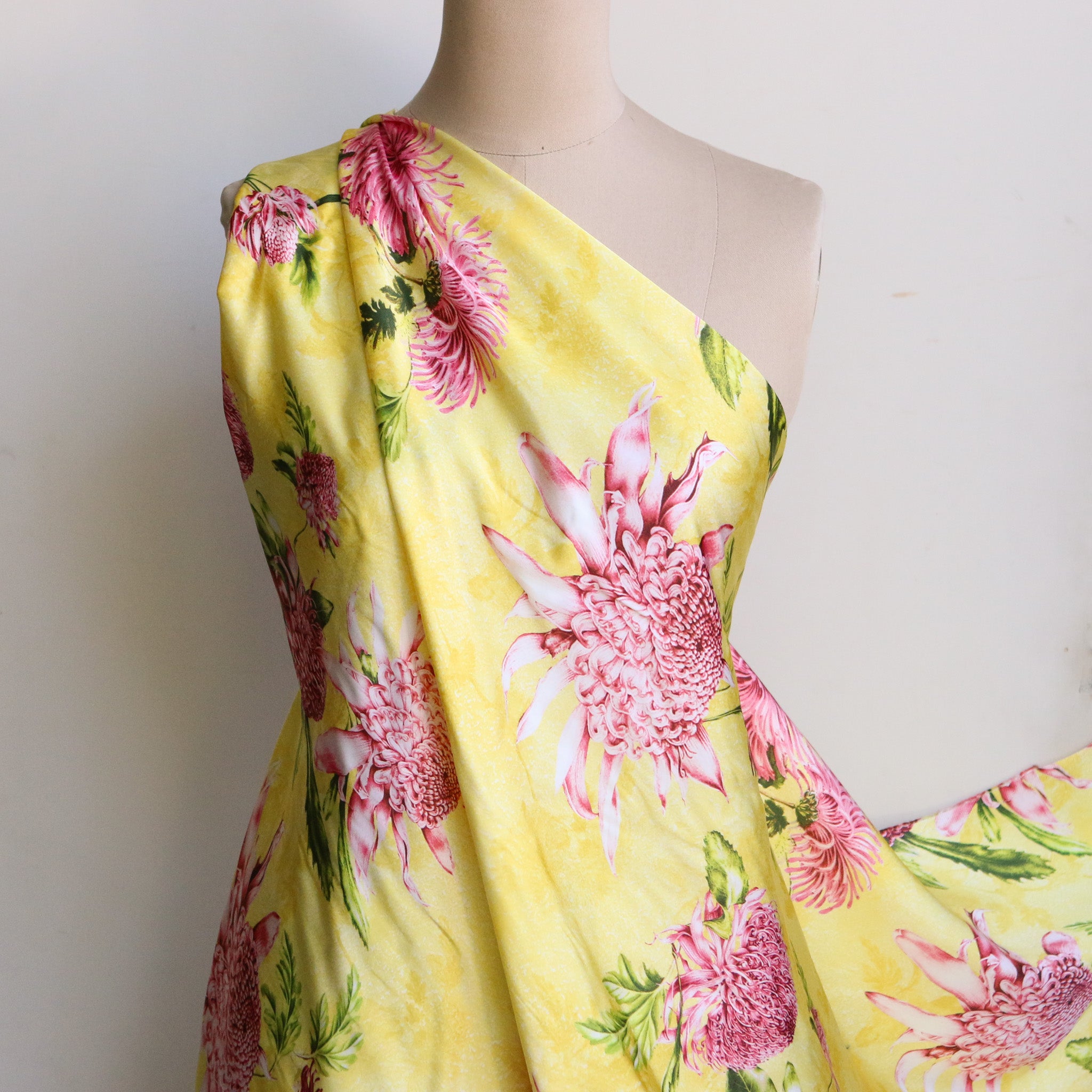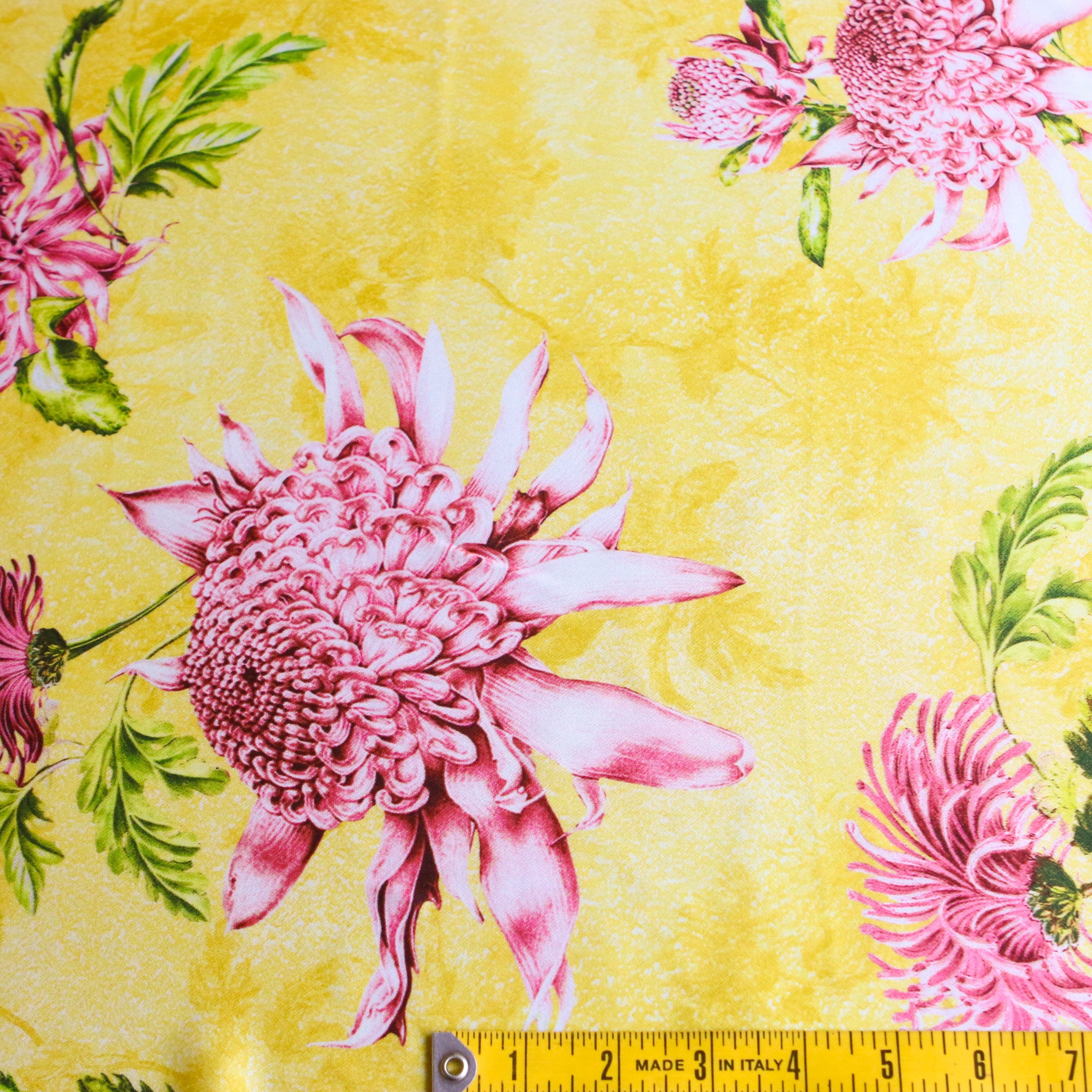 LIMITED Italian yellow/coral waratah floral 100% viscose