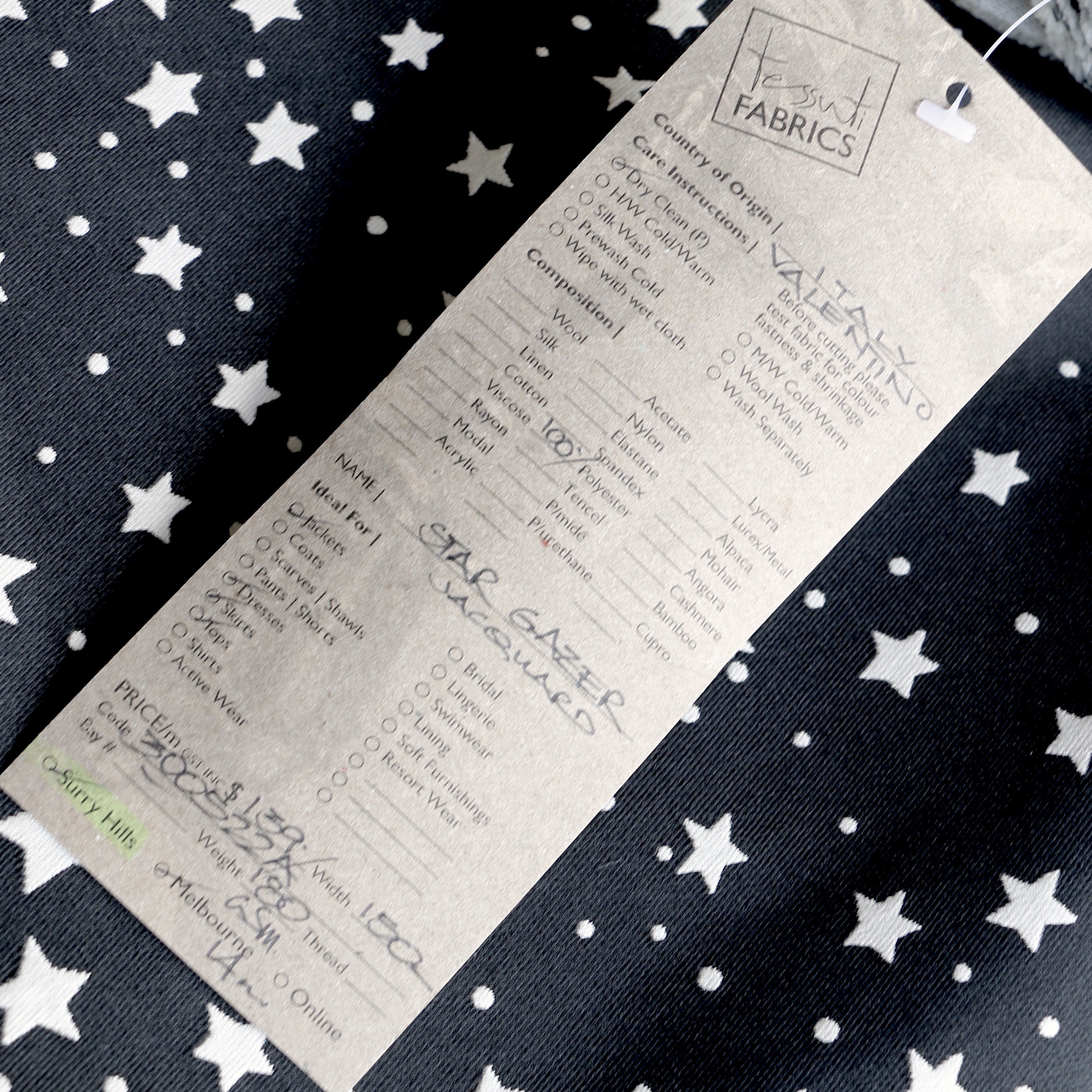 Italian designer Valentino black/cream jacquard 100% polyester delustered jacquard