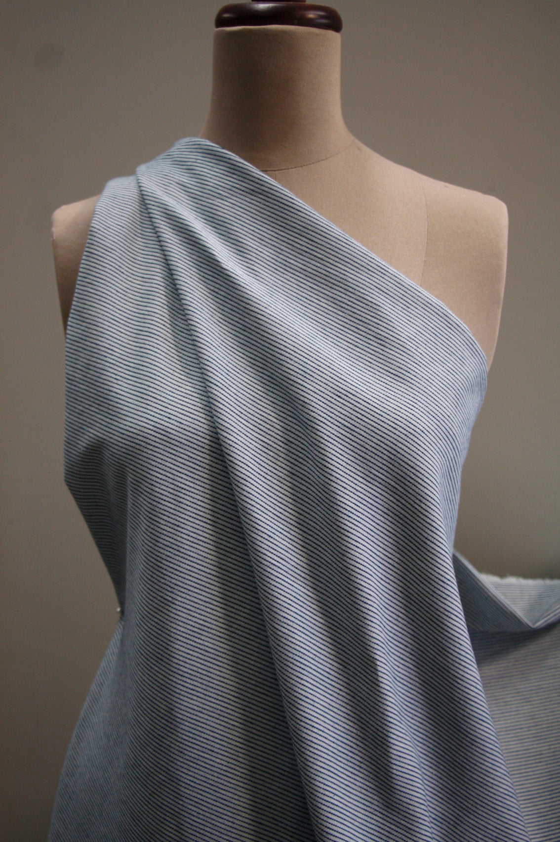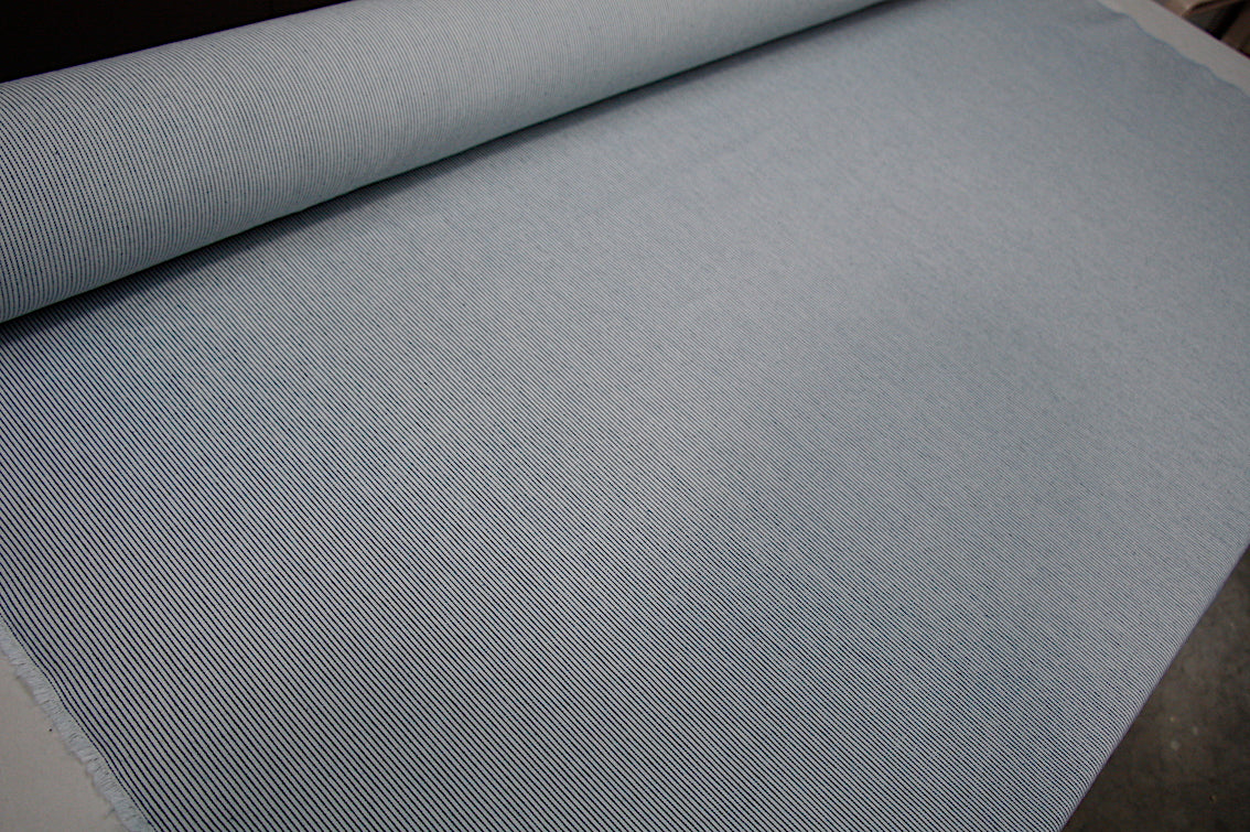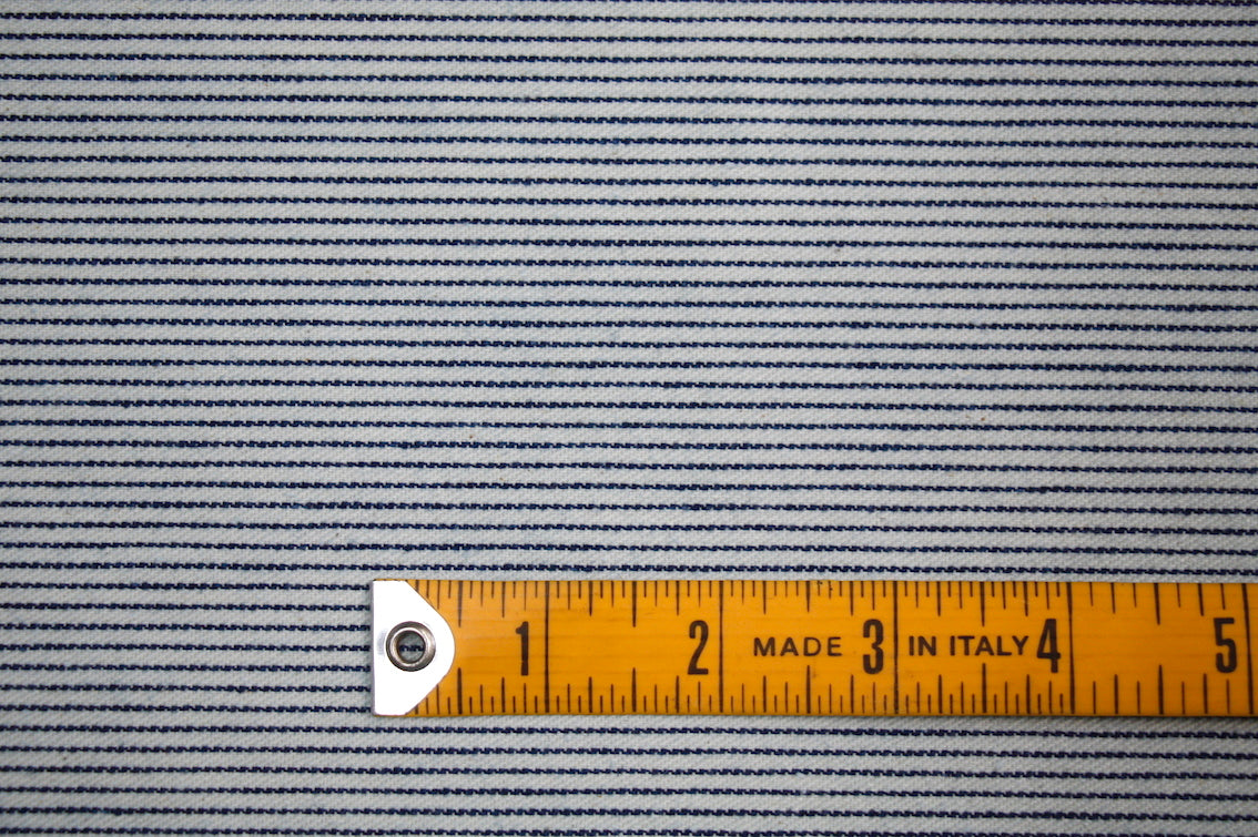 Italian mid-weight 100% cotton striped blue denim. Width: 150cm