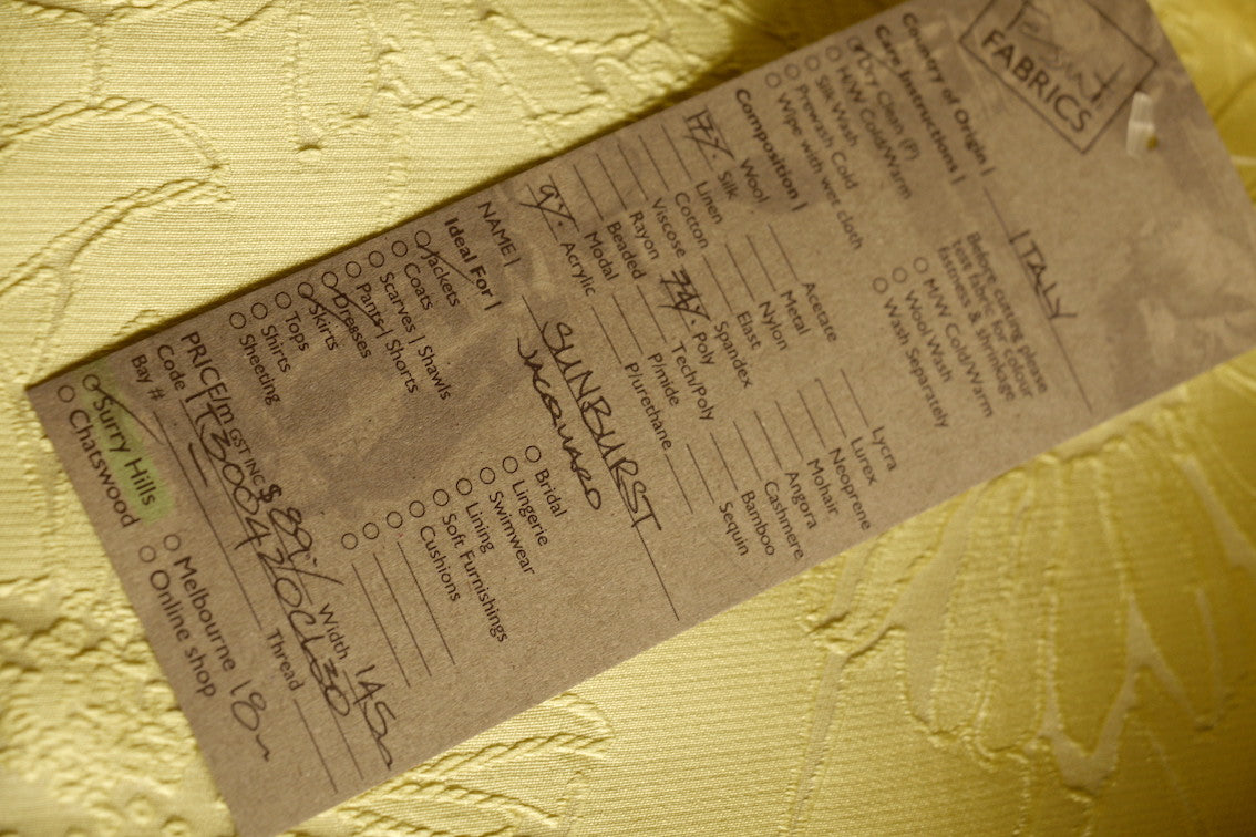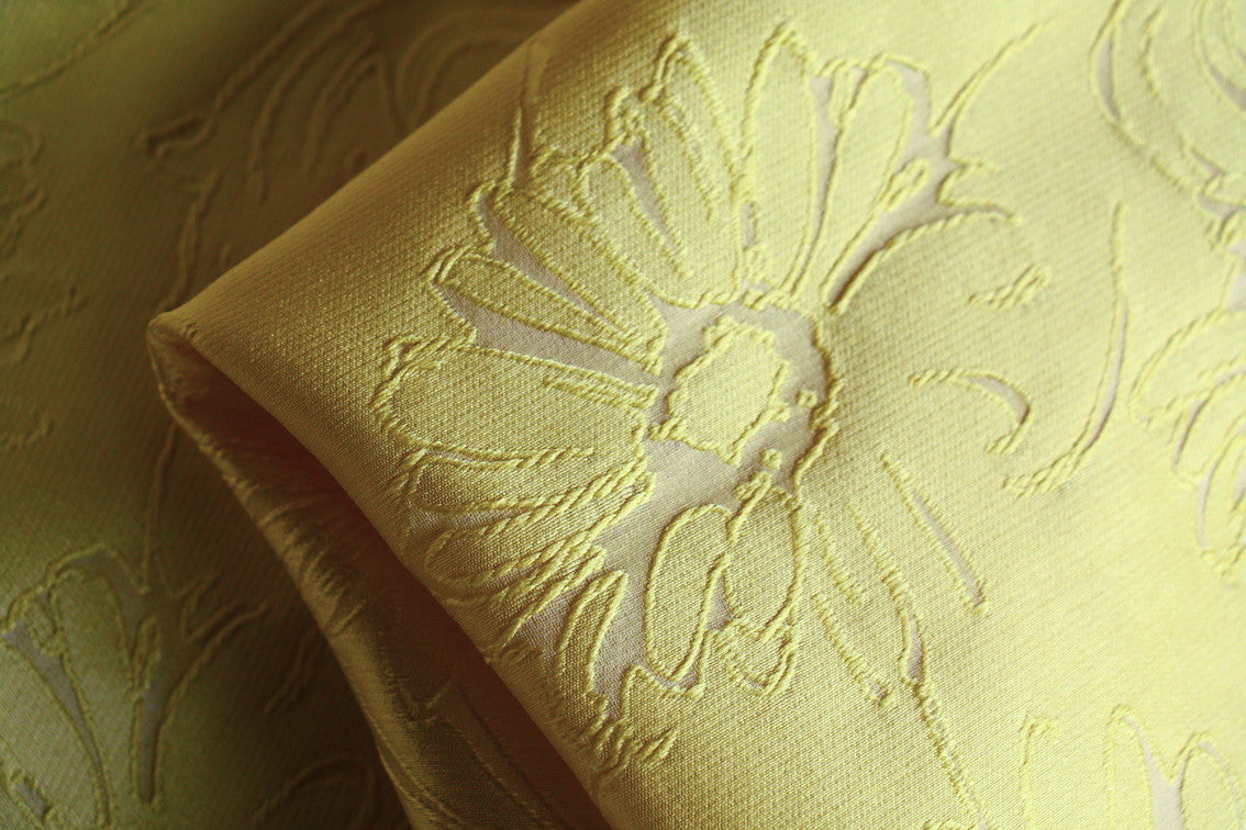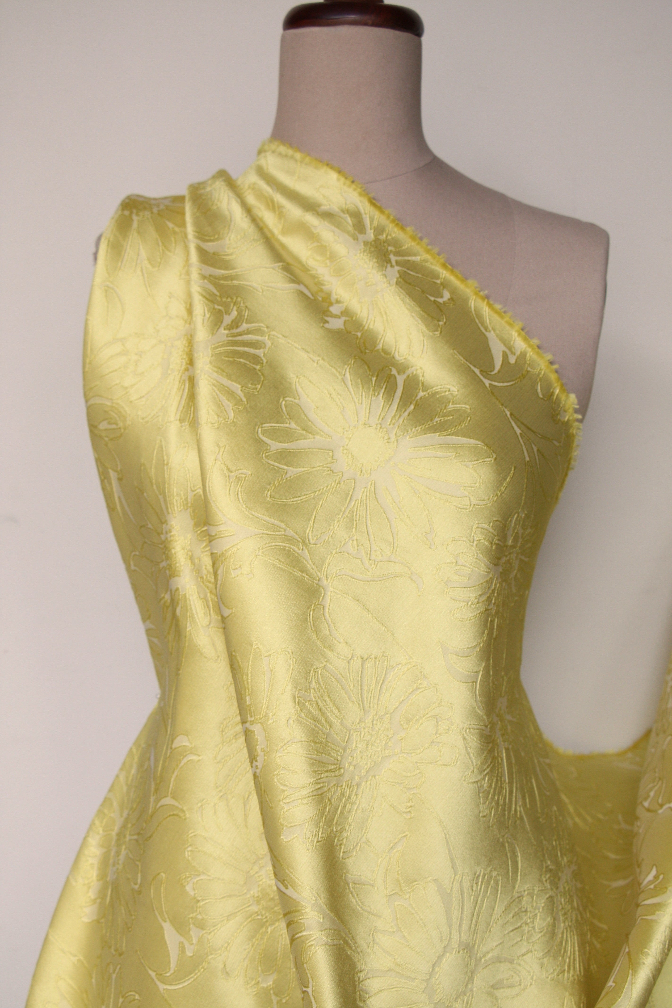 Italian designer citrus yellow 74% polyester 17% silk 9% acrylic jacquard. Width: 145cm